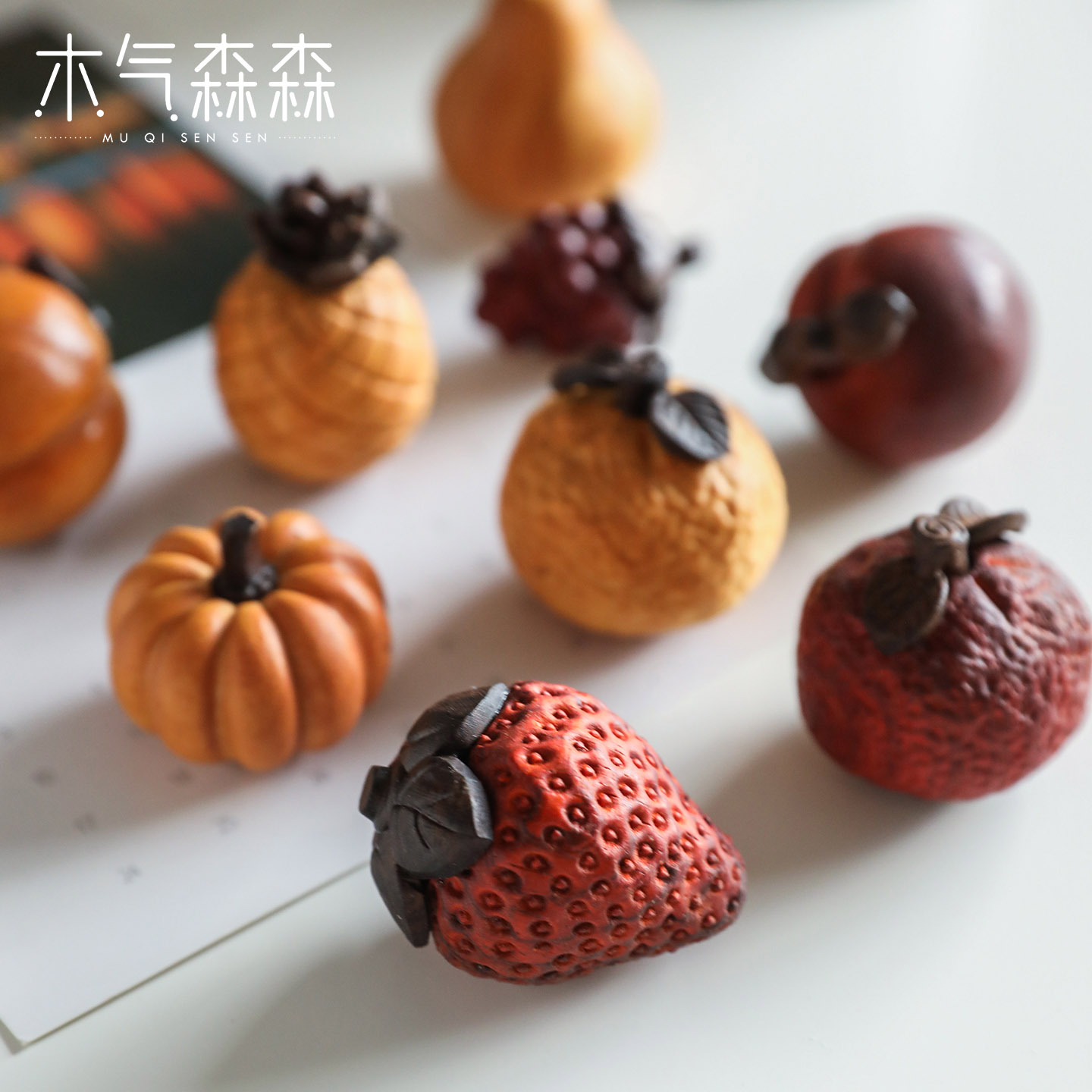 果蔬木雕小摆件木质山竹可爱实木木头水果治愈系礼物桌面装饰摆设