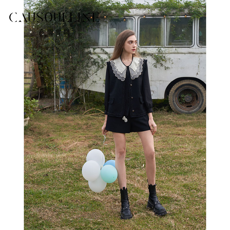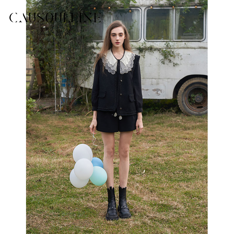 高斯雪岚2024春装新款花边气质娃娃领减龄衬衫淑女雪纺衫上衣