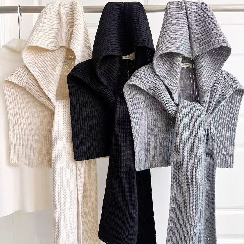 冬季外搭帽子围巾一体连帽披肩女羊毛针织围脖加厚保暖护颈假领子