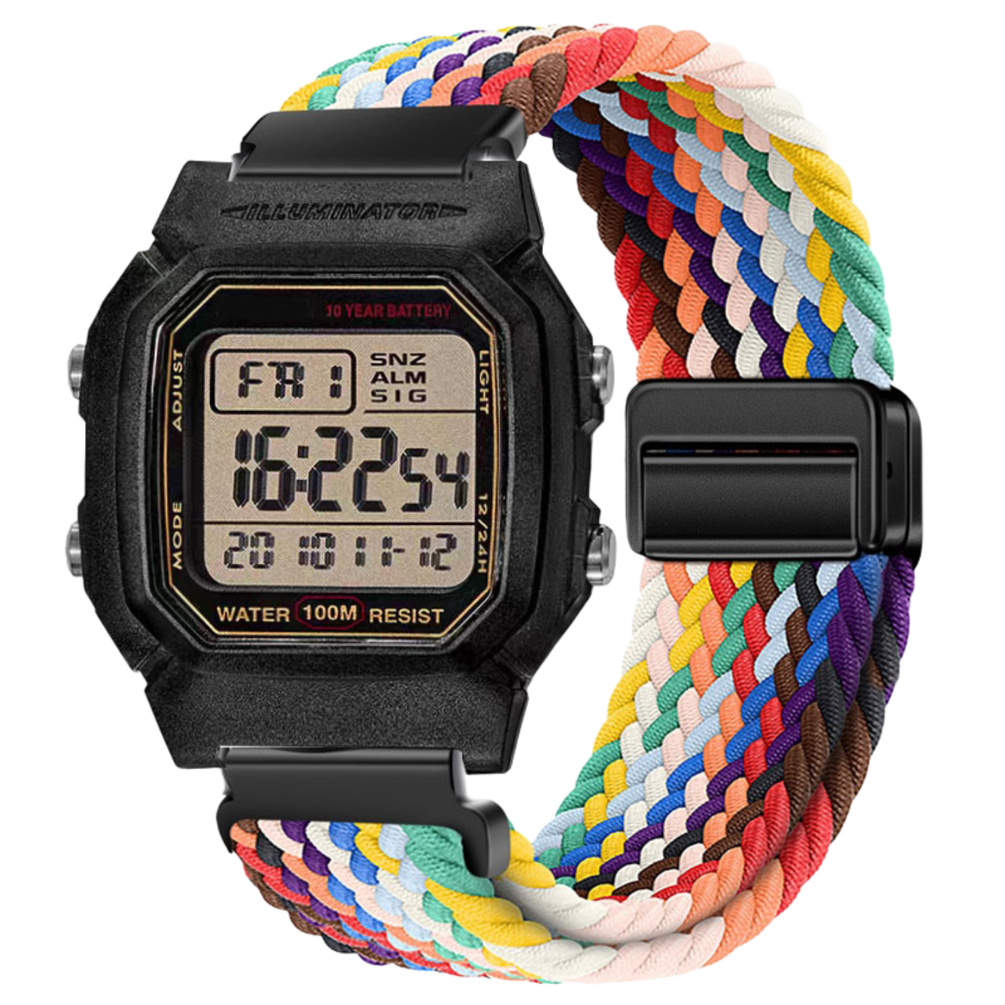 适用卡西欧手表带22mm编织表带小天才16MM佳明20MM替换带18子腾园电话手表卡针腕带华为尼龙透气调节磁吸回环