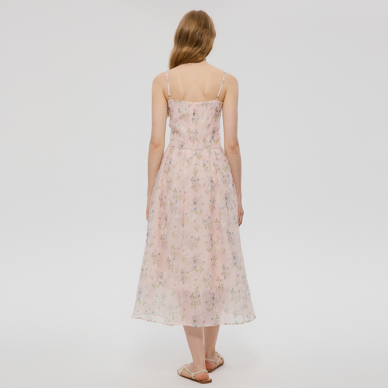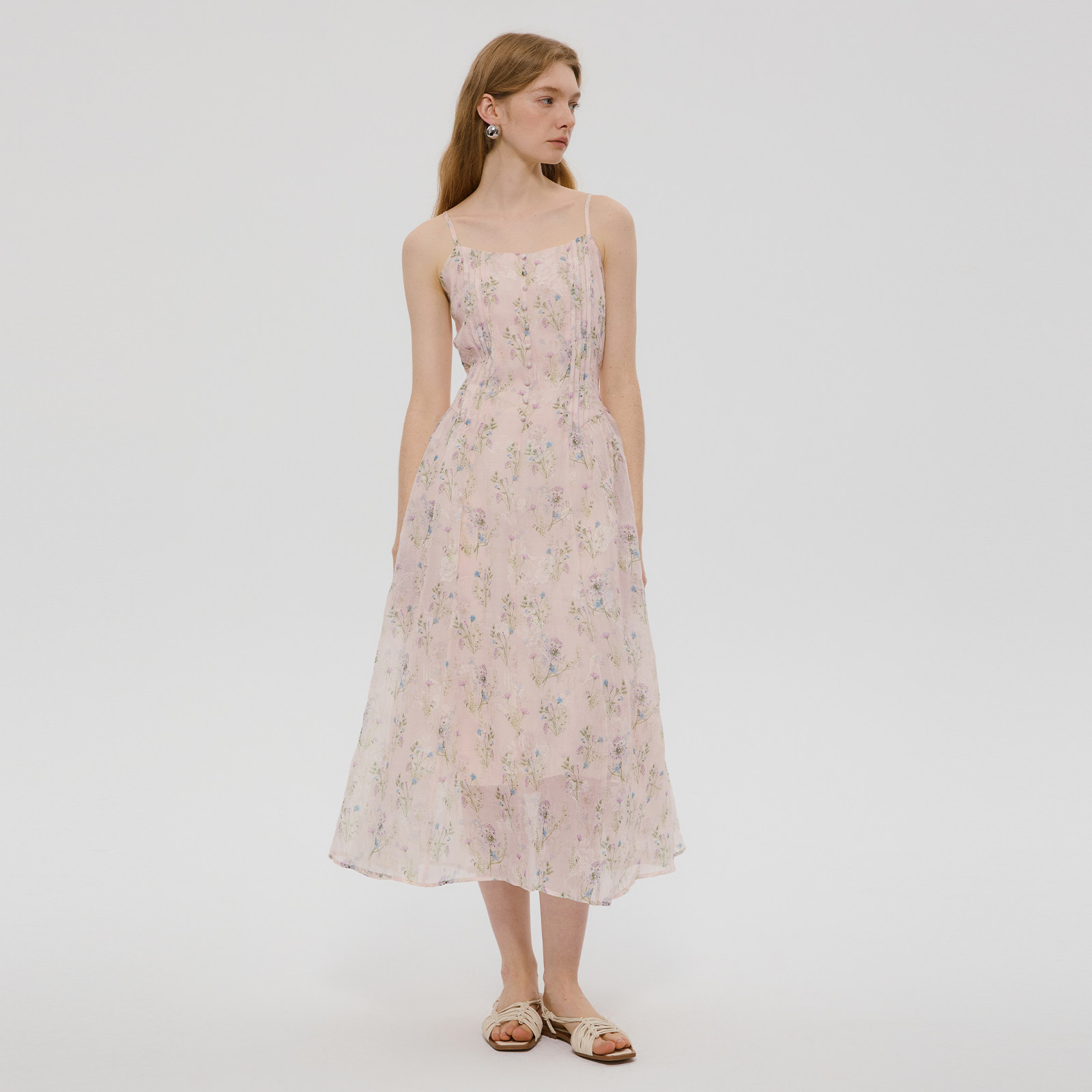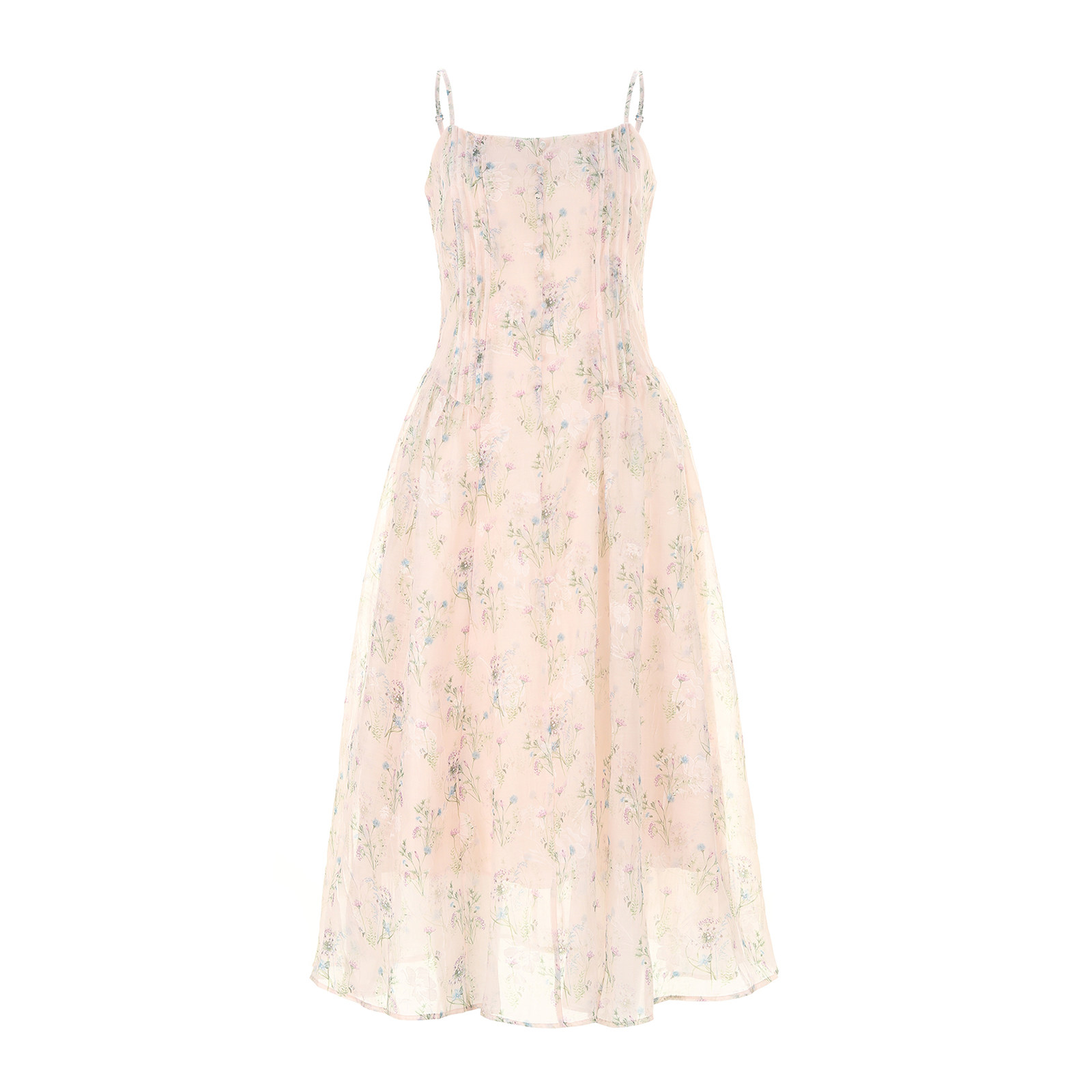 【明星同款】wana try白色压褶碎花吊带连衣裙柔美简约度假风长裙