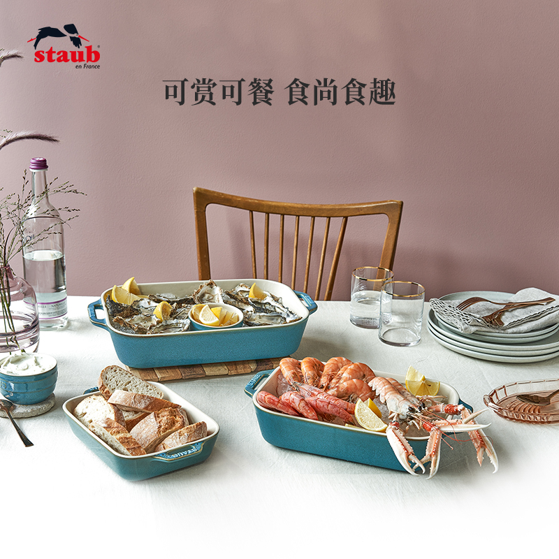staub珐宝陶瓷鱼盘方形烤盘套组多功能盘烤箱微波炉烘焙珐琅餐盘