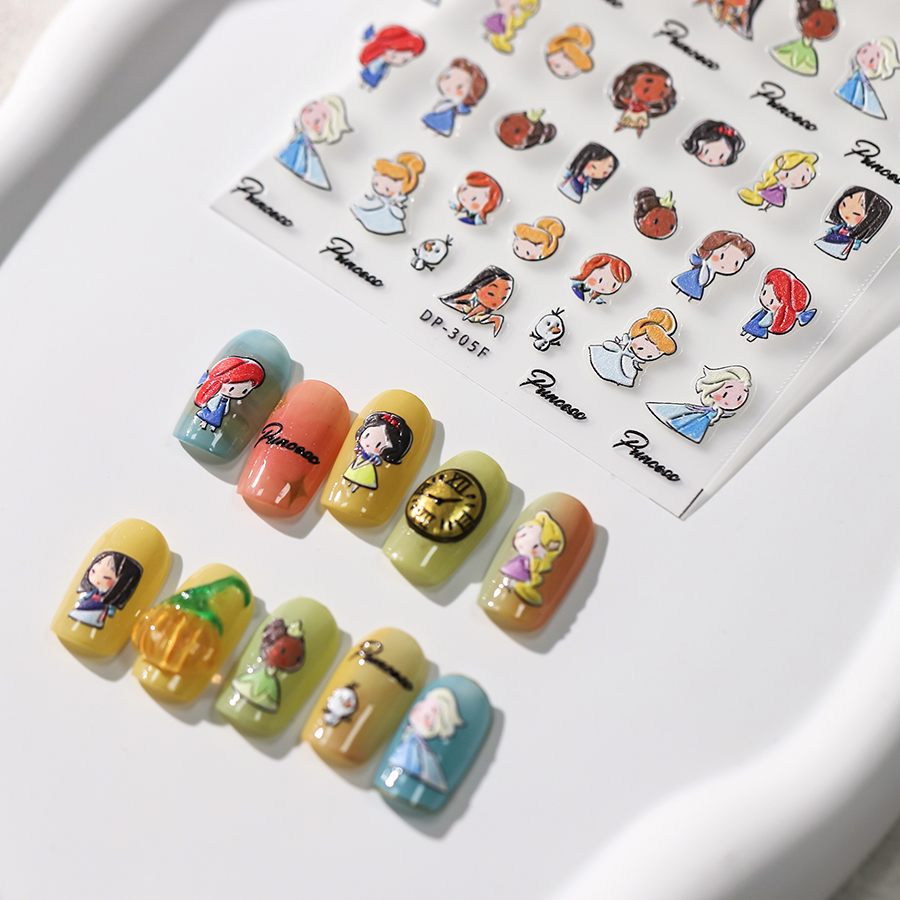 茉季Q萌卡通公主立体浮雕美甲贴纸防水指甲贴装饰贴饰品DP304 305