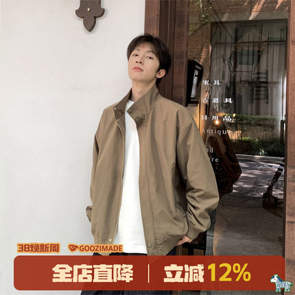 港仔文艺男美式哈灵顿立领夹克男春秋新款男生短款cleanfit外套