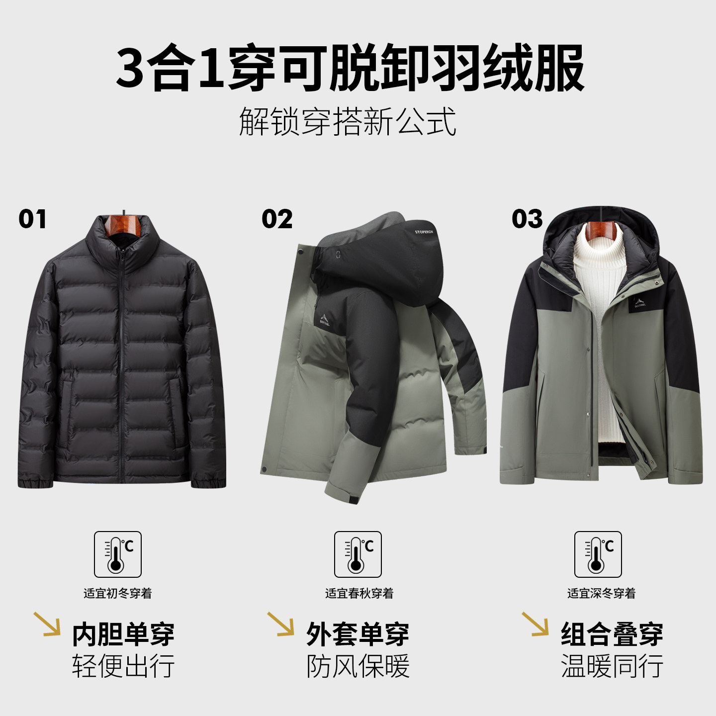 【一衣三穿】雪中飞男士羽绒服冬季撞色保暖可脱卸内胆冲锋外套男