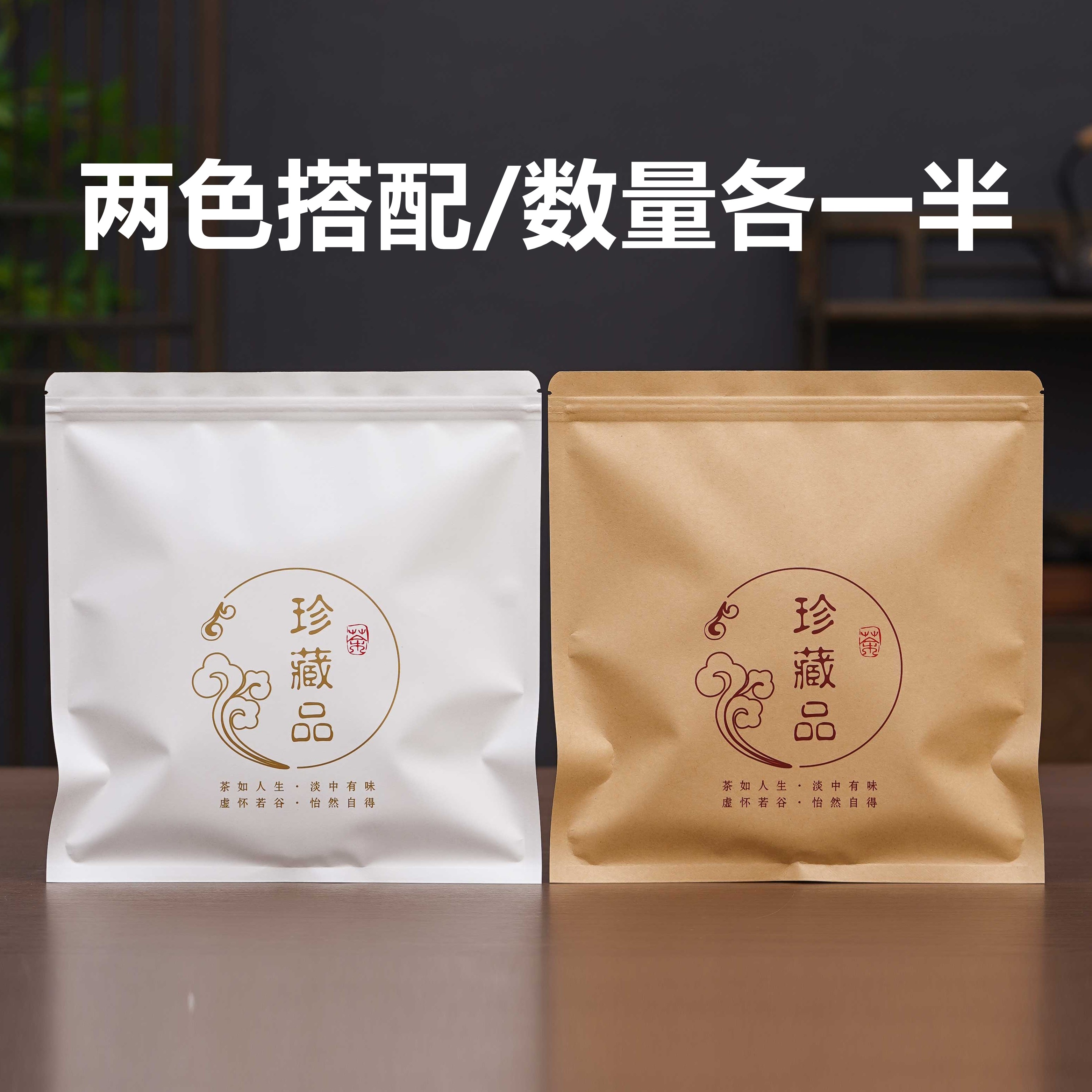 白茶包装袋357g普洱茶牛皮纸自封袋铝箔防潮加厚茶饼收藏密封袋子