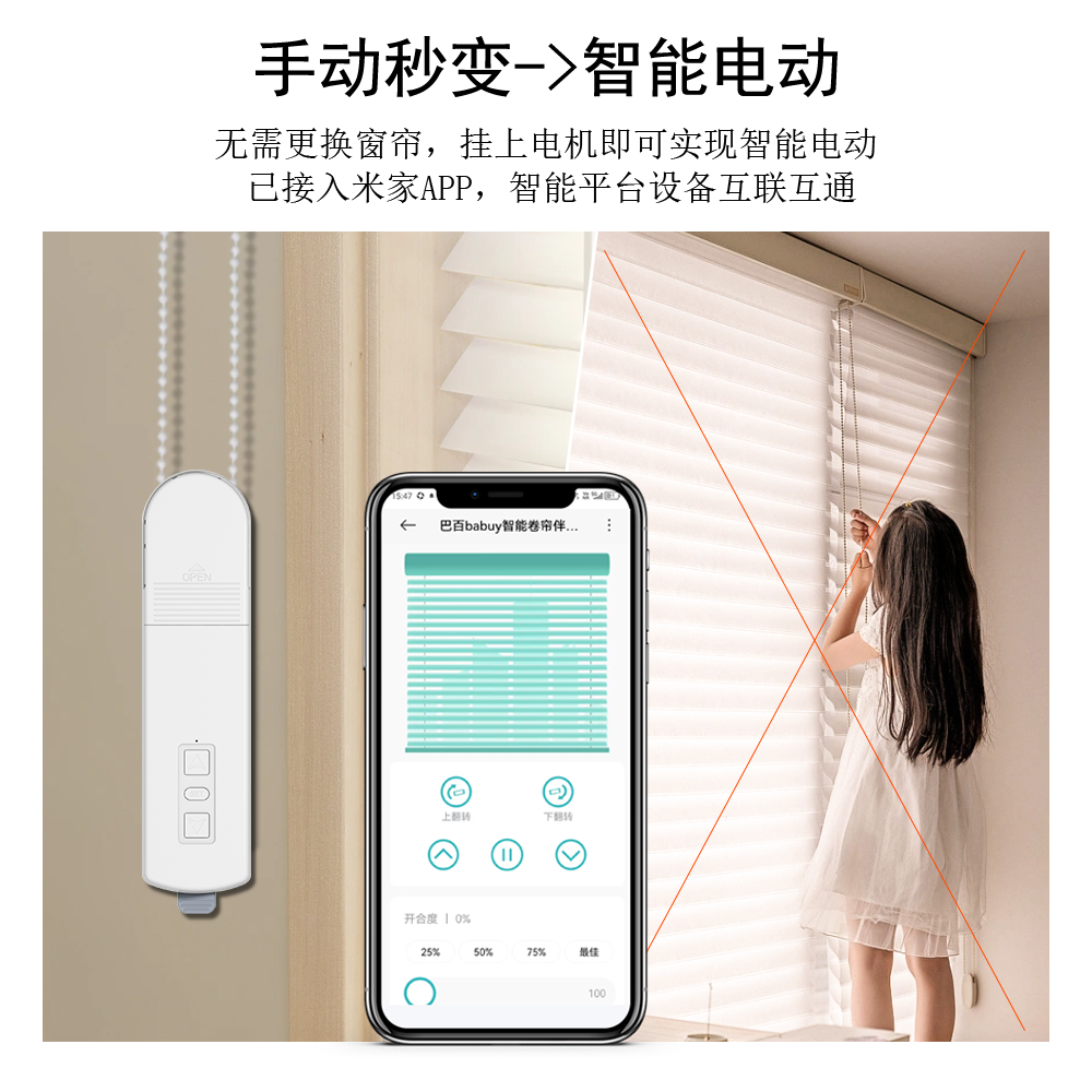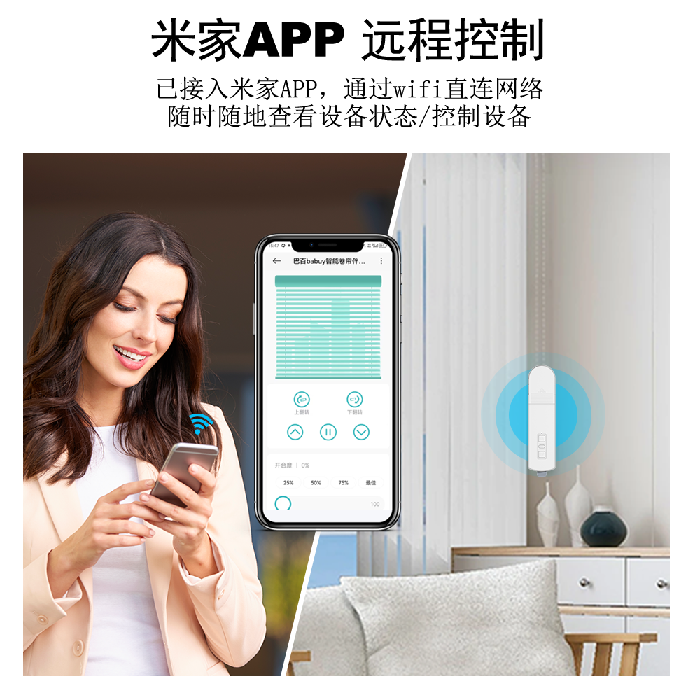 巴百babuy卷帘伴侣WiFi6Mesh2.0已接入米家APP小爱定时拉珠帘电机