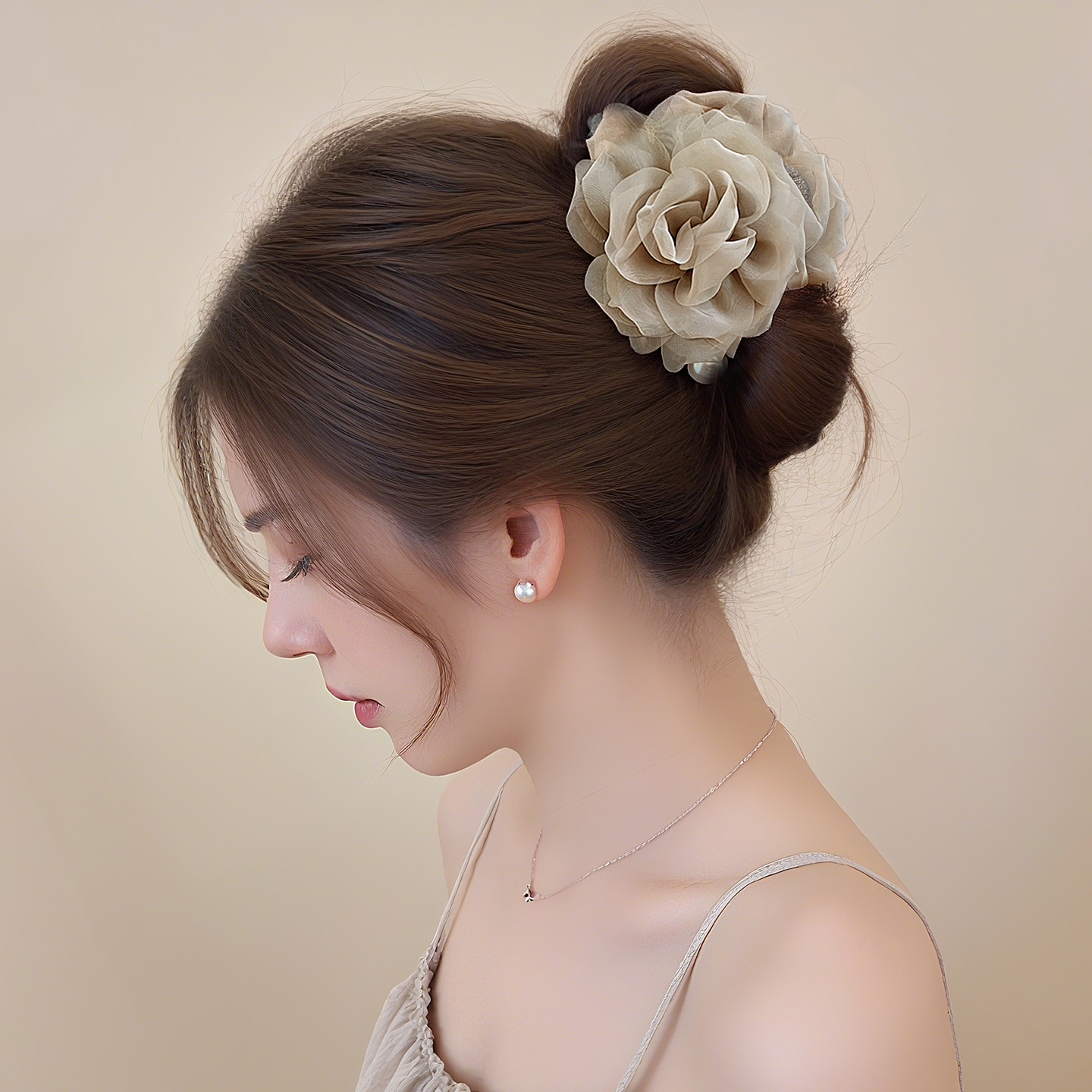 轻纱玫瑰抓夹发夹女2025新款高端后脑勺头发夹子鲨鱼夹头饰发饰
