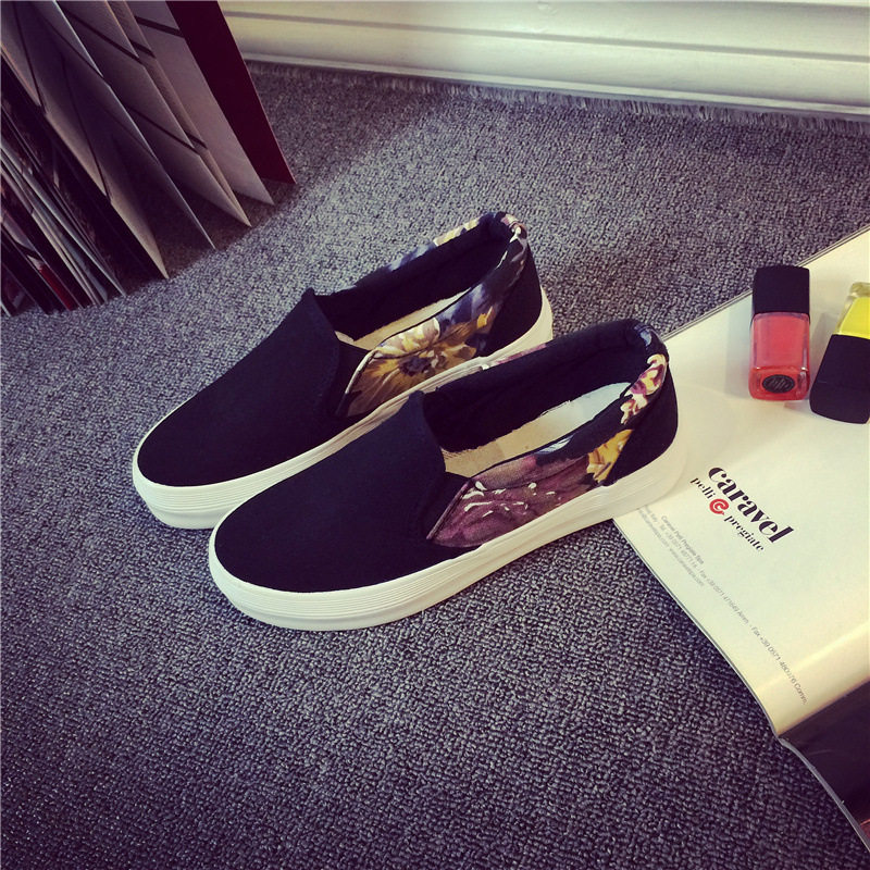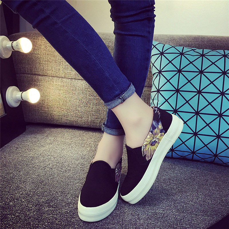 2025季新款小黑鞋厚底增高韩版套脚一脚蹬单鞋学生平底鞋帆布鞋女