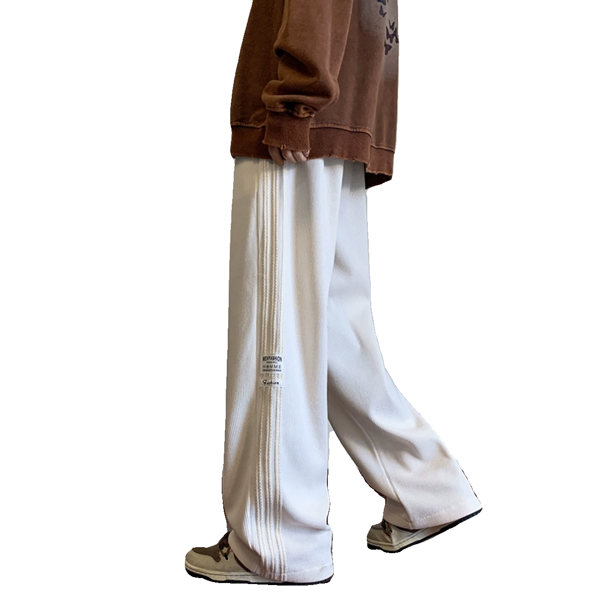 胖胖哥条纹裤子男款秋季港风运动直筒长裤潮牌大码宽松男装休闲裤