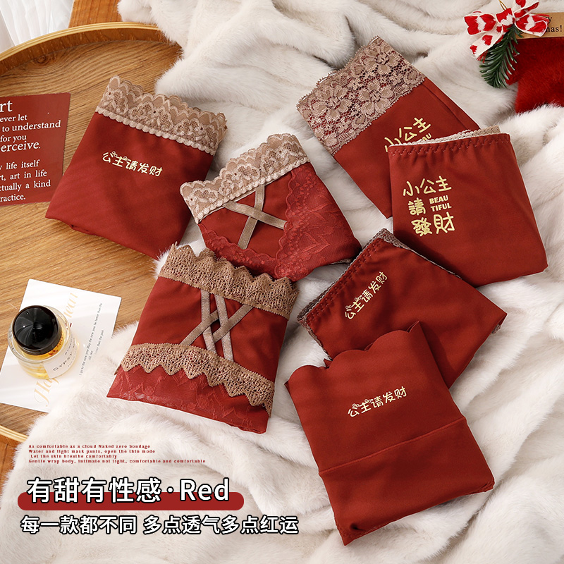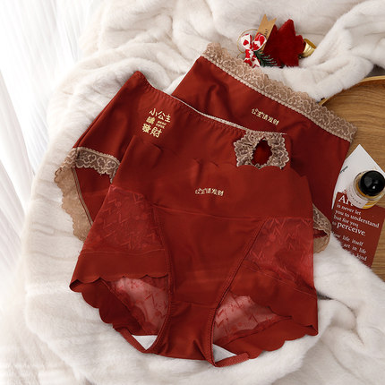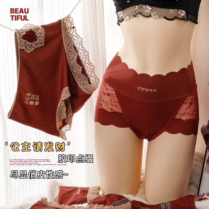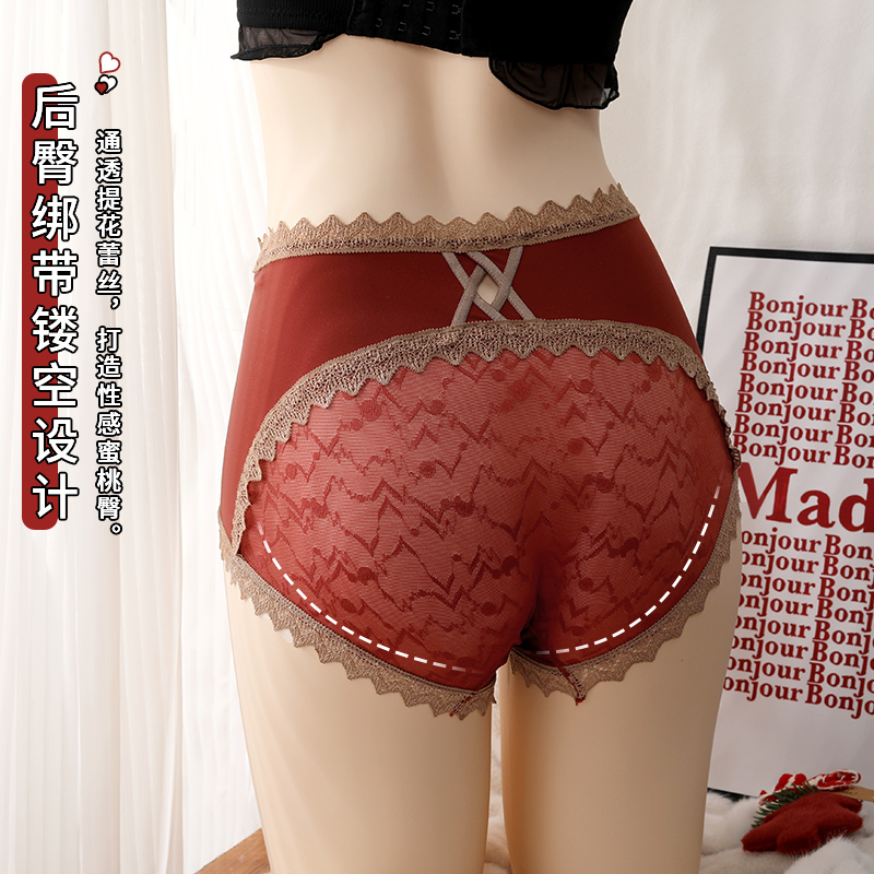 洁韵朵本命年红色内裤女性感蕾丝抑菌裆收腹提臀新年礼物蛇年短裤