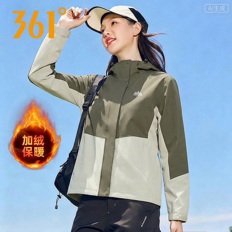361°绒里风衣女2026冬季新官方正品女款宽松运动厚外套562543608