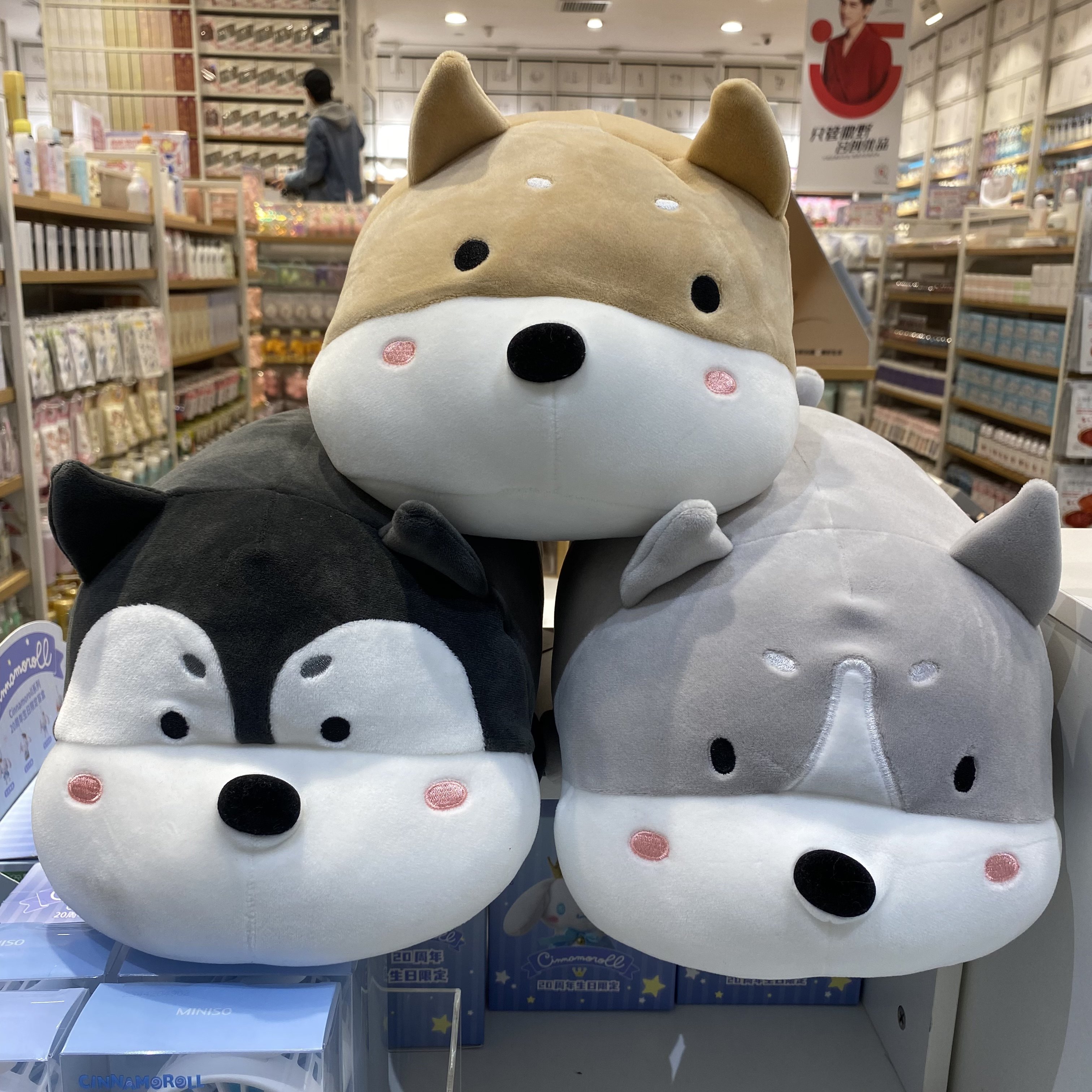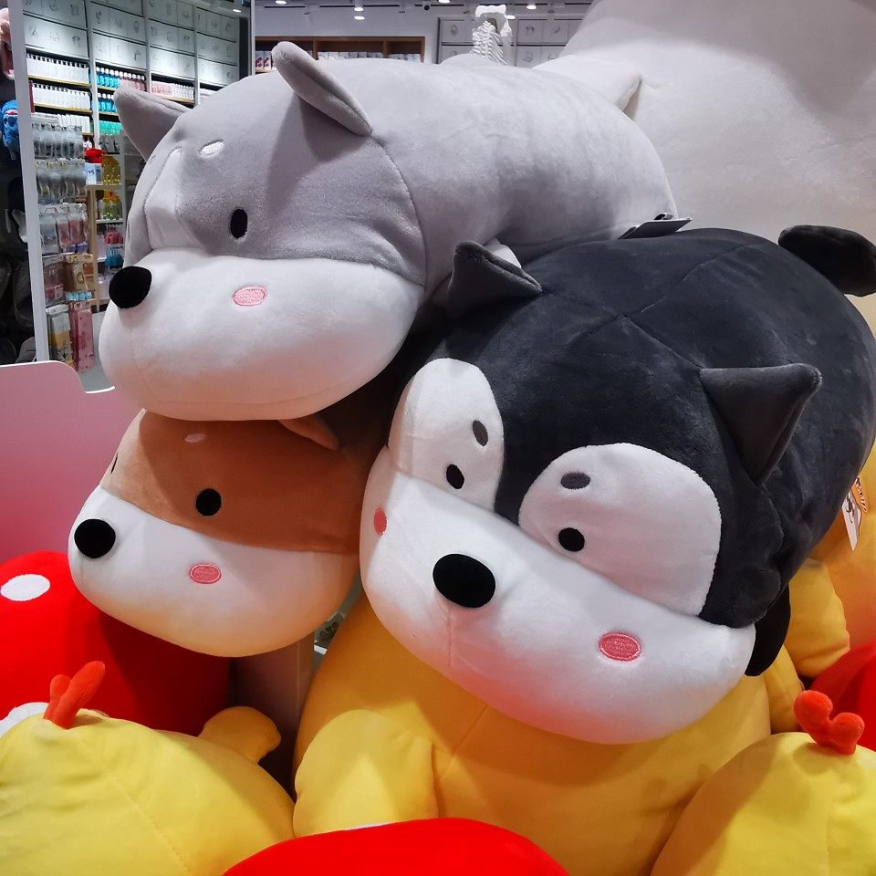 趣味趴姿狗狗大号公仔 名创优品miniso萌趣造型哈士奇毛绒玩具
