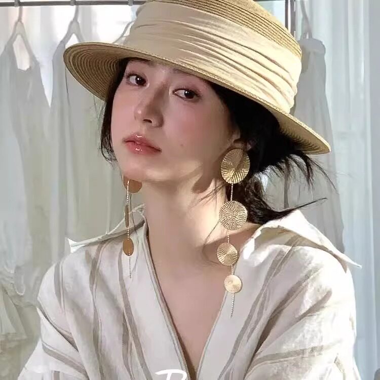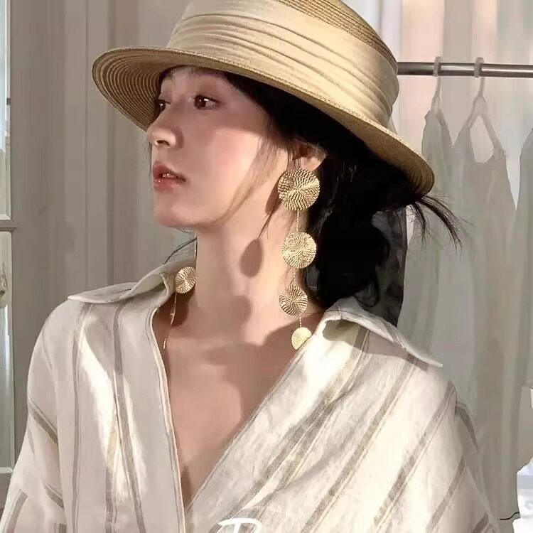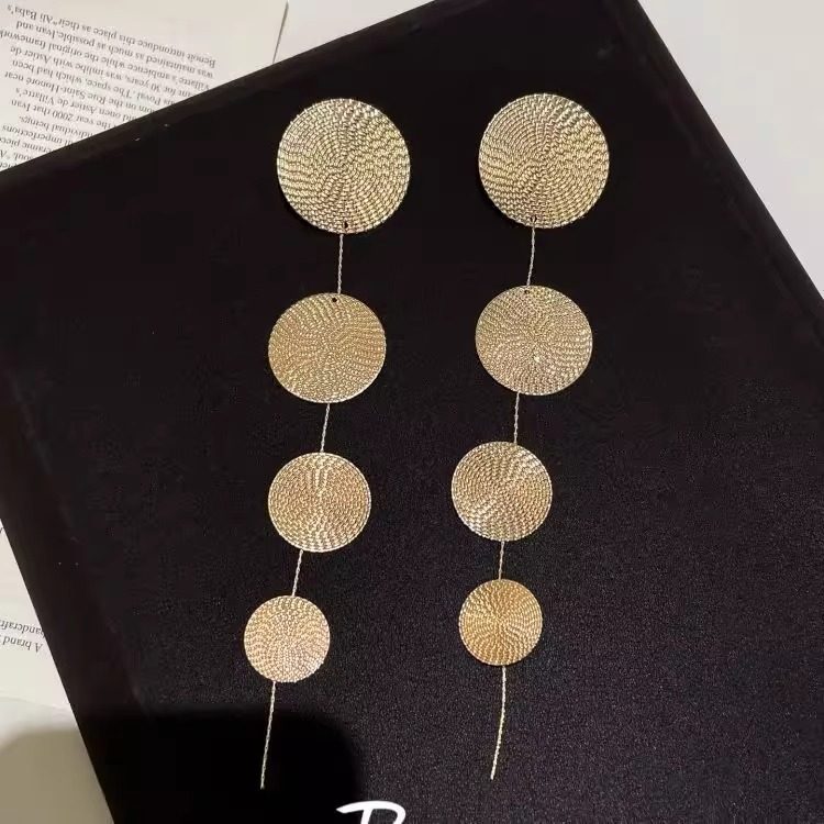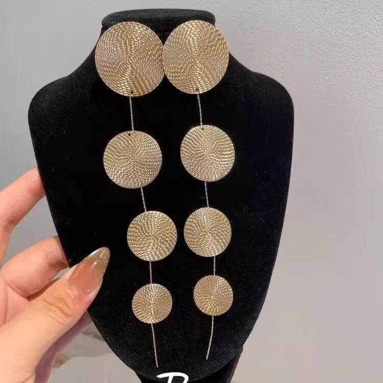 老钱风_金色圆片长款流苏耳环夸张小众设计高级感气质时尚耳钉女