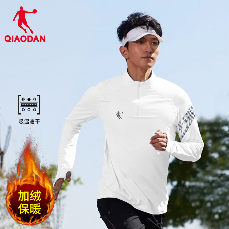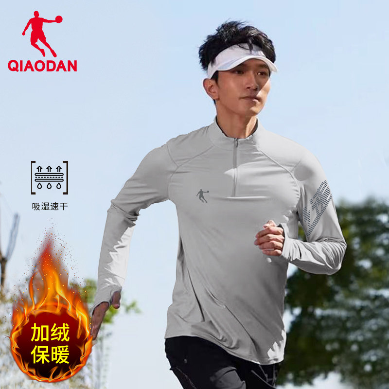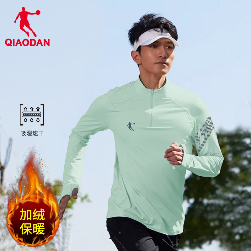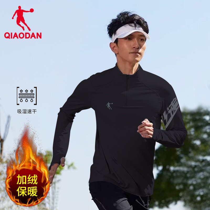 乔丹跑步长袖男2025春季新款加绒半拉链运动T恤休闲立领速干上衣