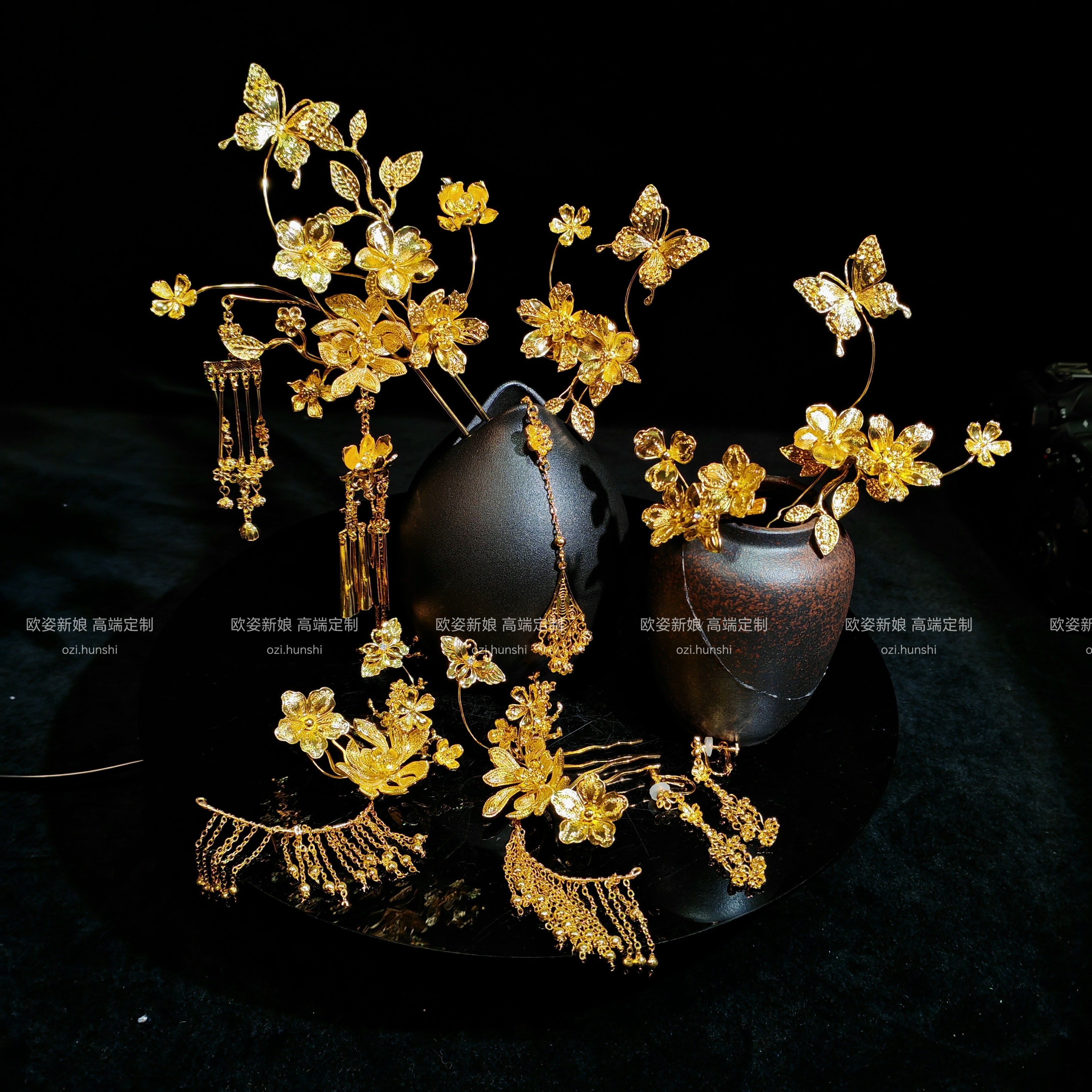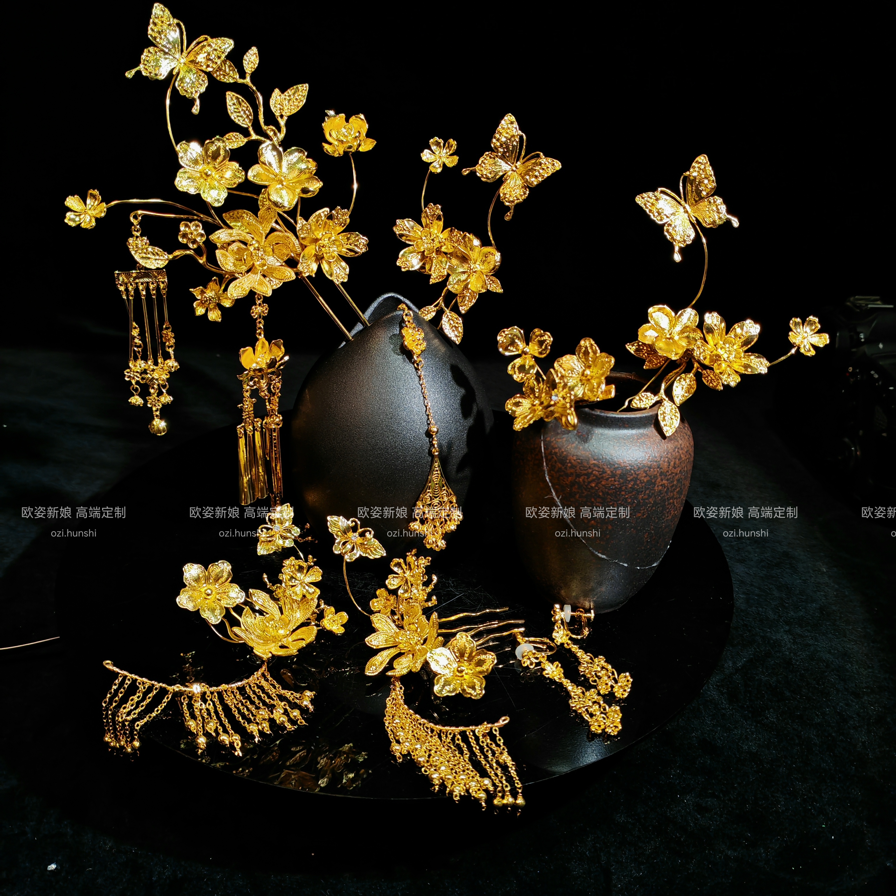 高级感金色龙凤褂头饰超美新品推荐纯铜发钗旗袍新国风发饰12862