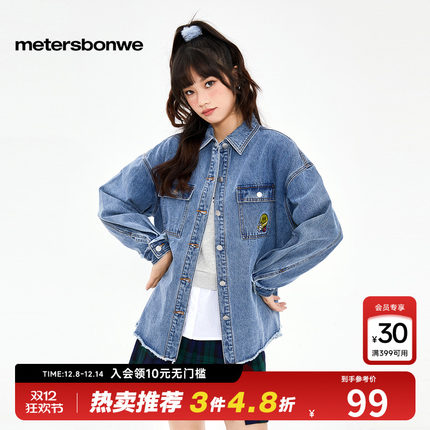 美特斯邦威牛仔外套女春季新款舒适百搭刺绣宽松开衫上衣短款夹Q