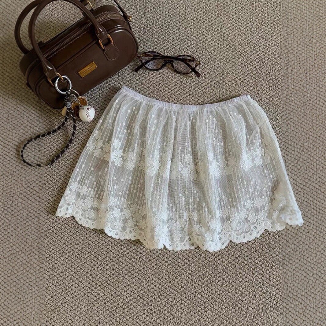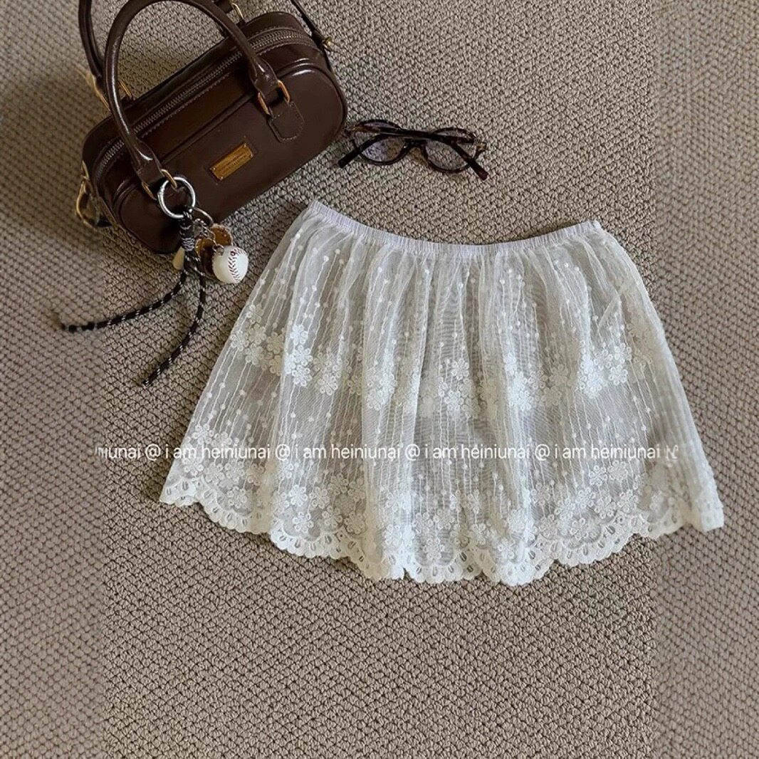 新品大码春夏叠穿蕾丝屁帘女秋冬搭配裙帘时尚白色花边半身裙潮