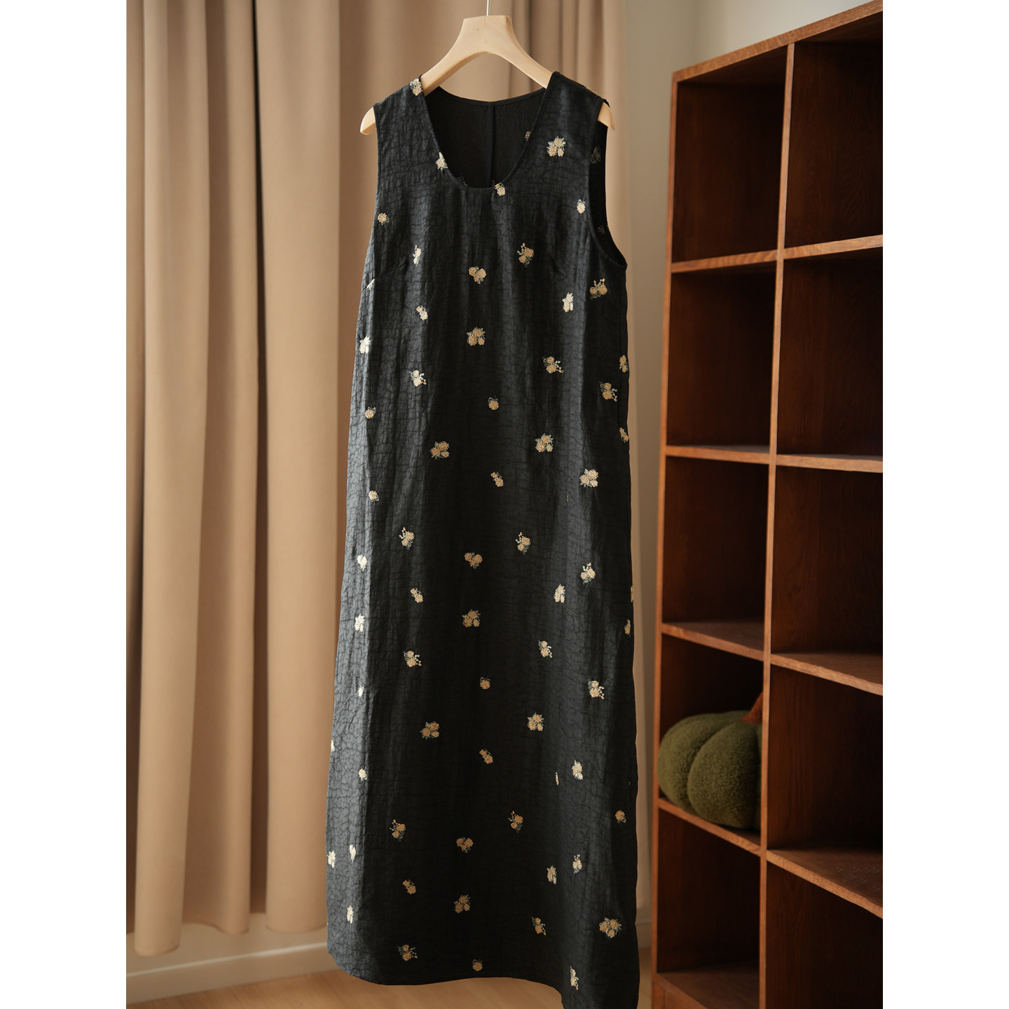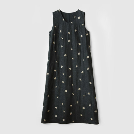 黑龟纹香云纱 女士真丝背心连衣裙 气质桑蚕丝刺绣长裙 夏款 女装