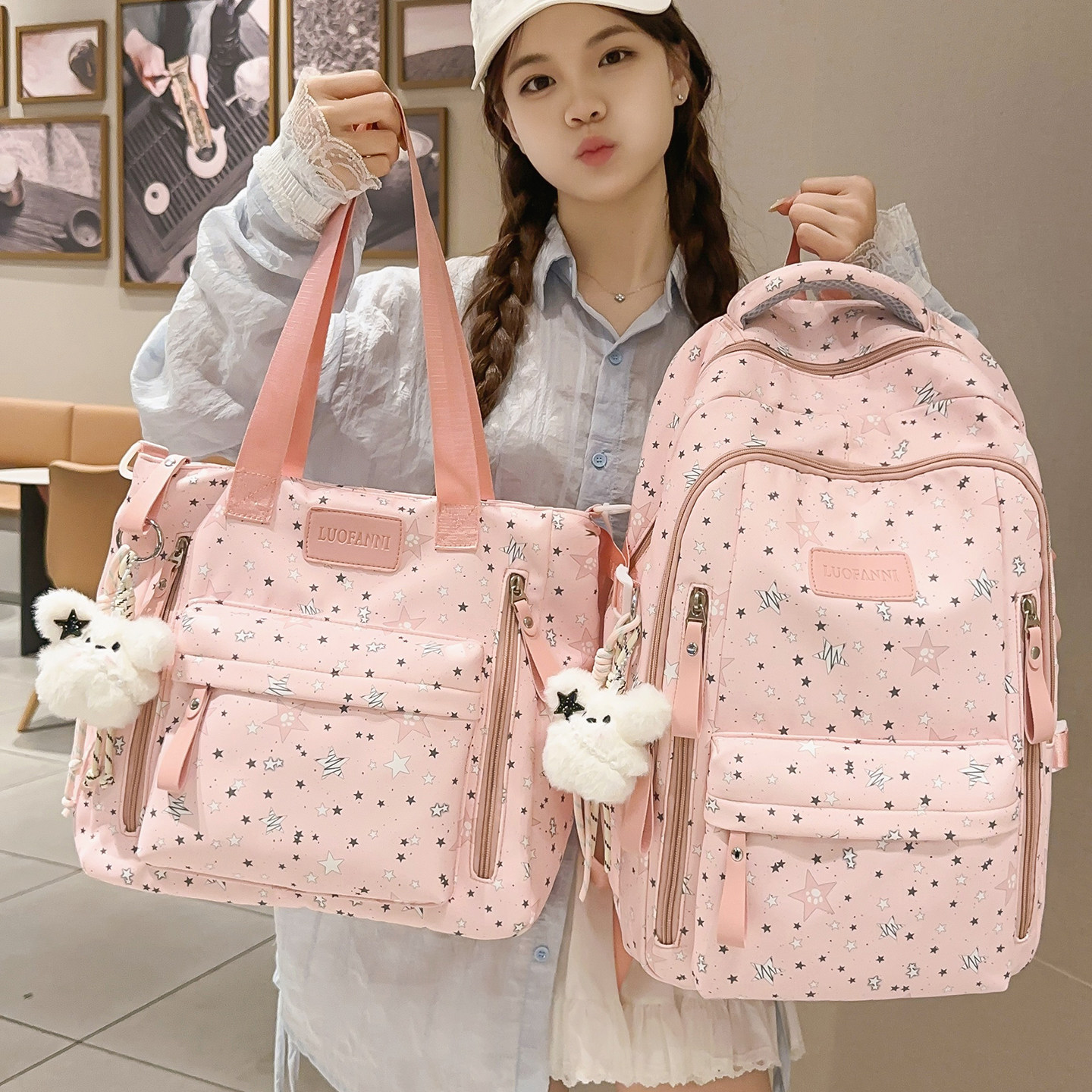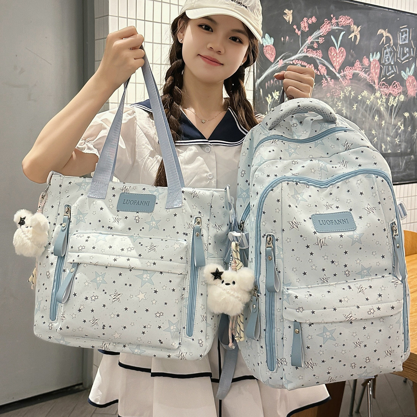 星星图案高颜值大容量双肩包