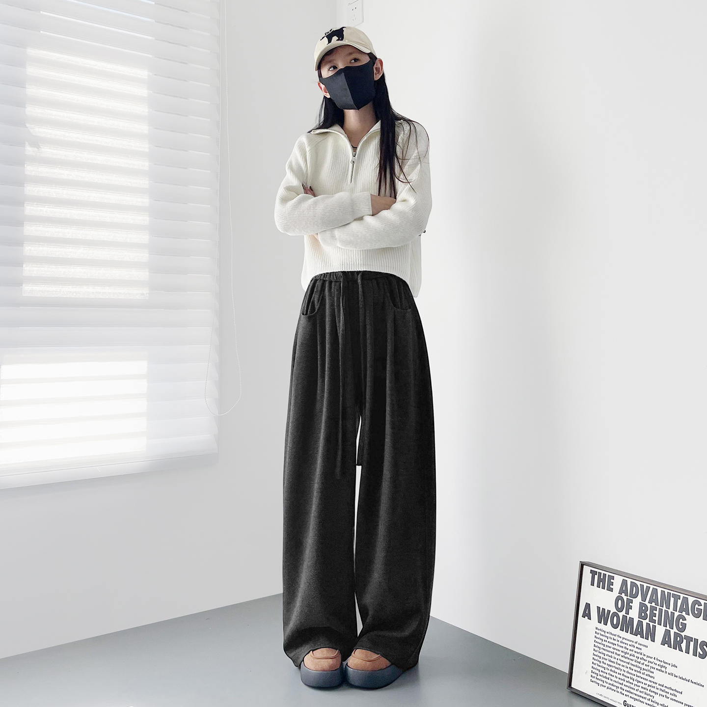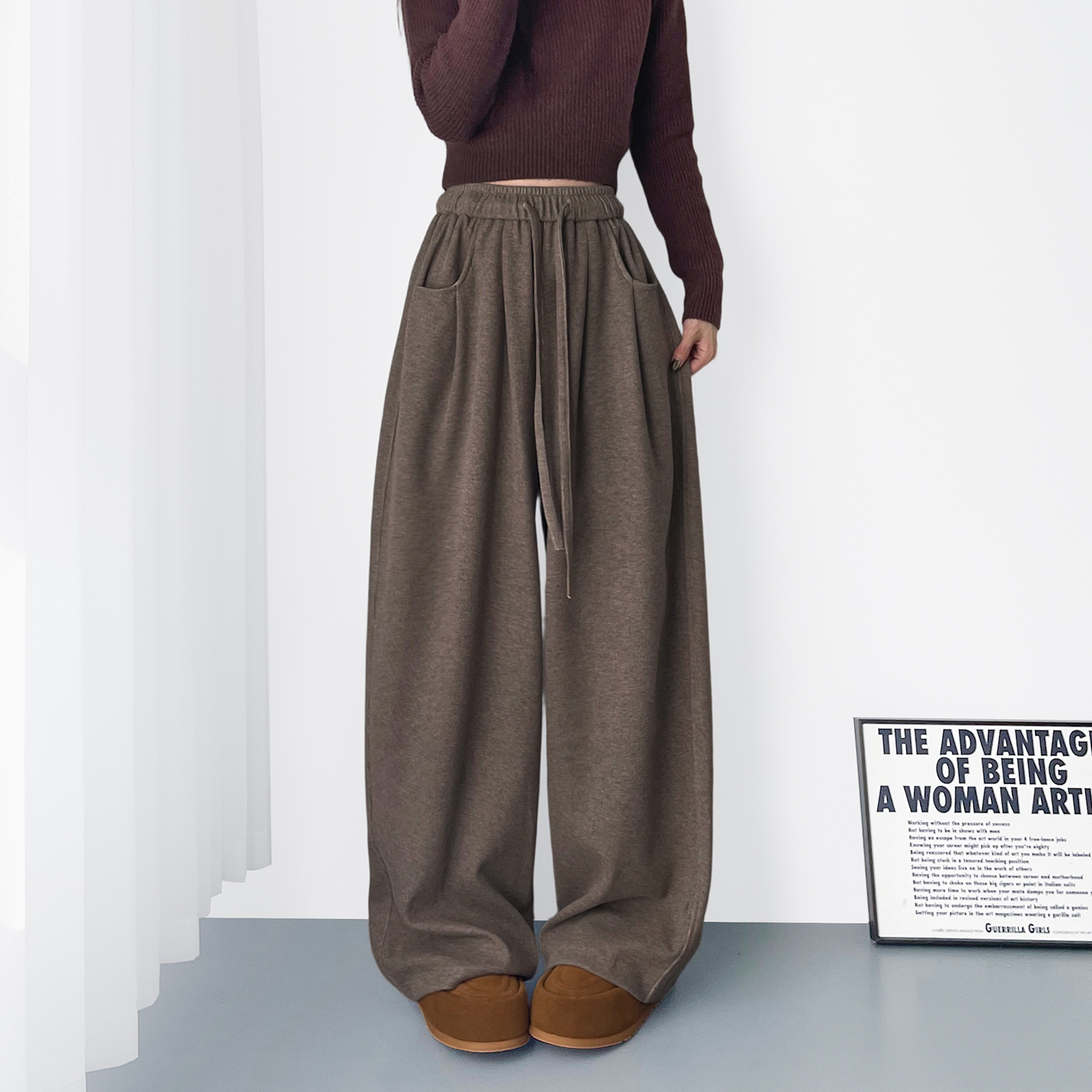 大码高腰松弛感糯米裤女冬季2025新款胖mm宽松慵懒显瘦遮肉阔腿裤
