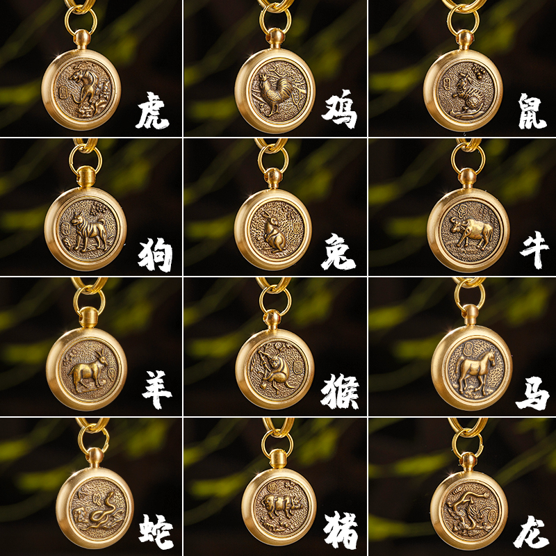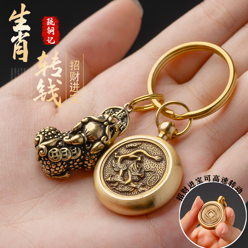 纯铜黄铜十二生肖钥匙挂件转钱手工高档招财转运汽车钥匙扣挂饰男