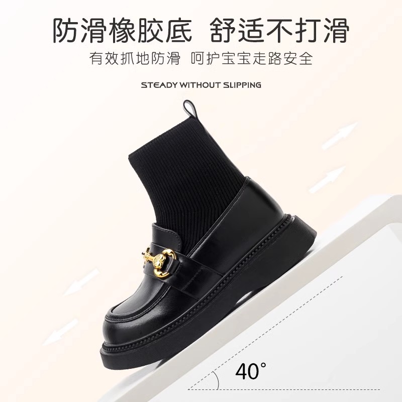 FVM女童鞋子儿童加绒袜靴子2025新款秋冬季女孩马丁短靴洋气皮靴