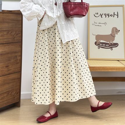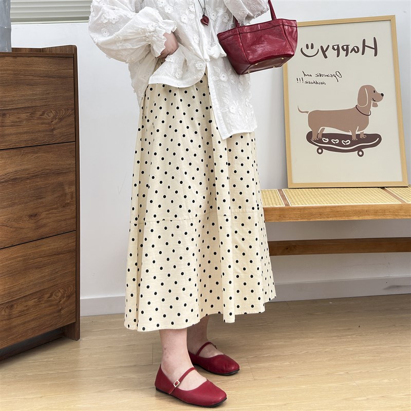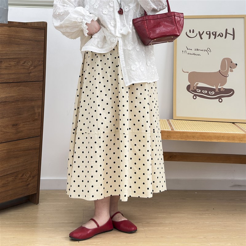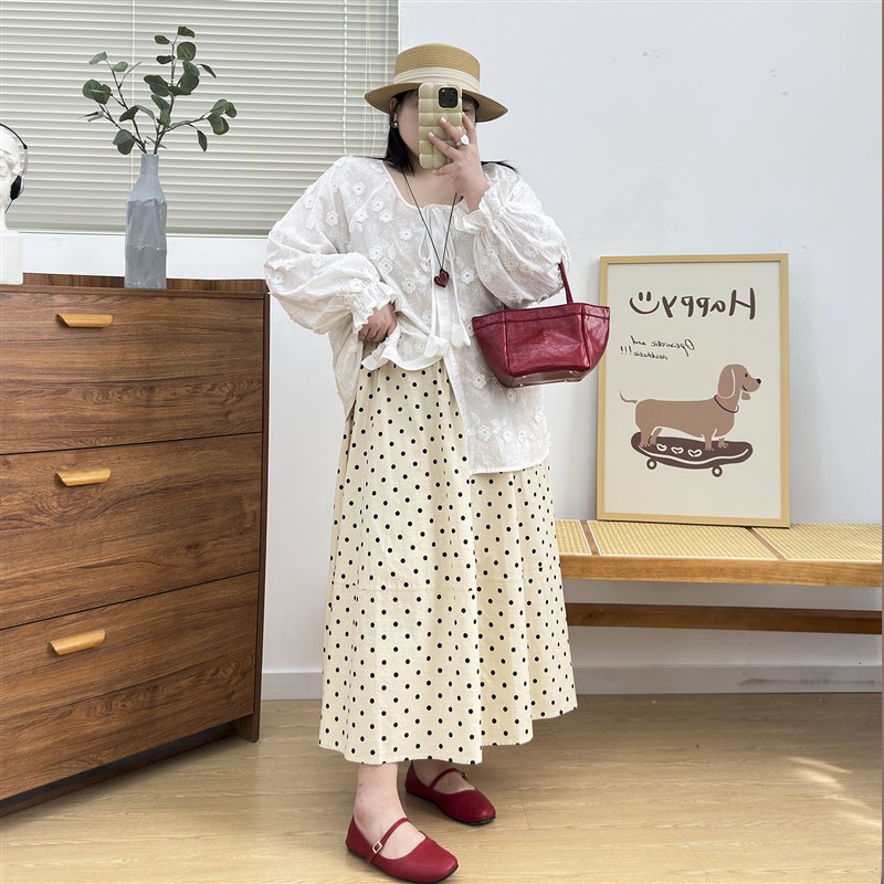 宛宛大码女装波点半身裙夏季高腰显瘦胖mm遮肚子A字裙松紧腰藏肉