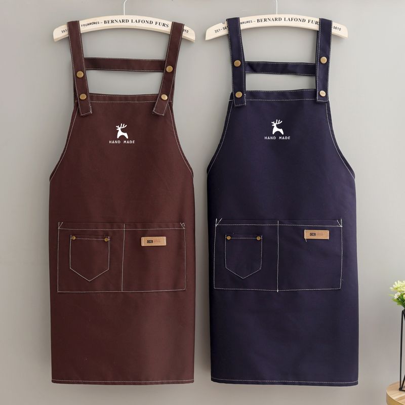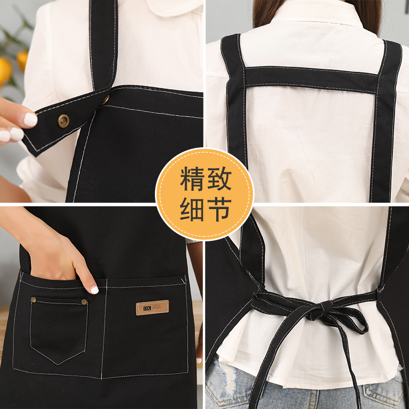 定制日式简约布料帆布围裙时尚男女围腰上班工作服商用无袖夏印字