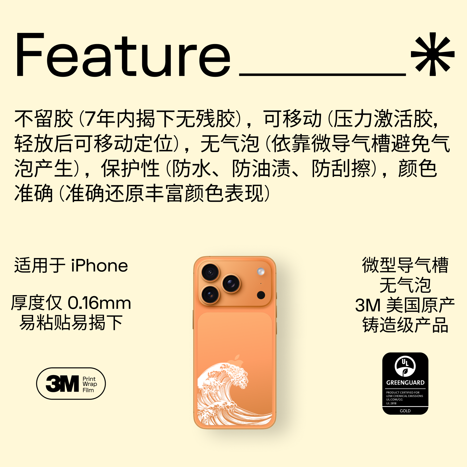SkinAT适用苹果17Pro Max玻璃板区域贴膜 iphone 17Pro局部手机背膜 16系列透明创意保护膜 3M苹果手机背膜