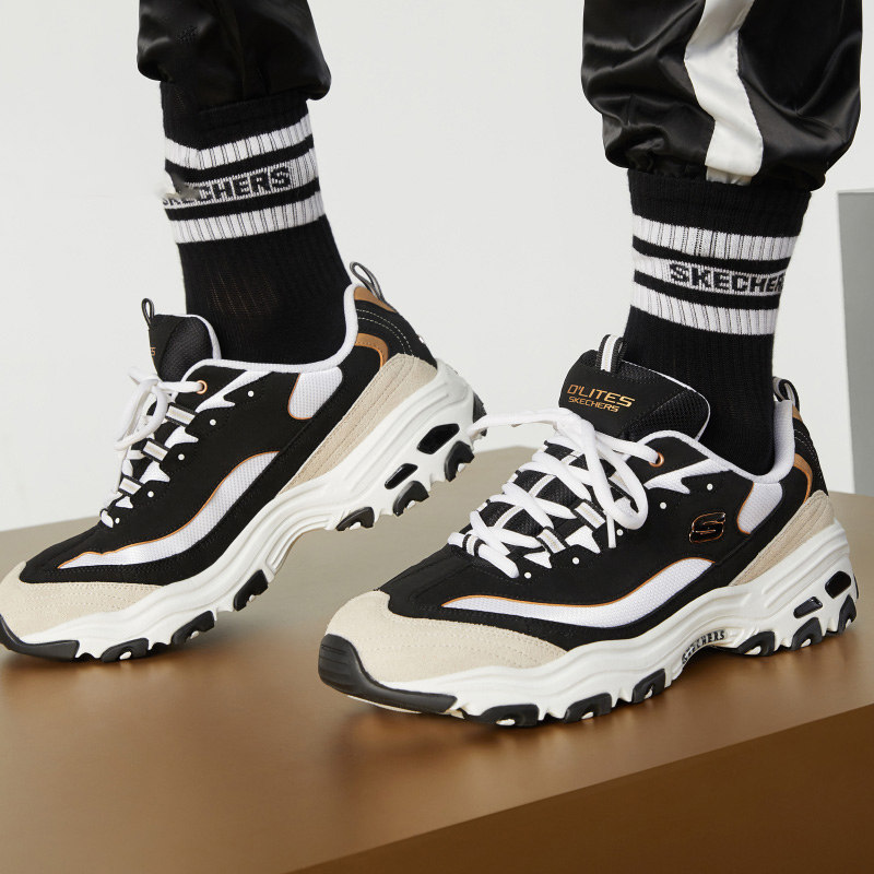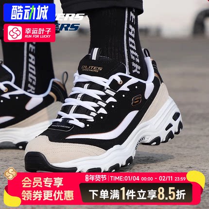 斯凯奇男鞋秋季新款厚底显高老爹鞋黑金熊猫鞋轻便休闲鞋运动鞋