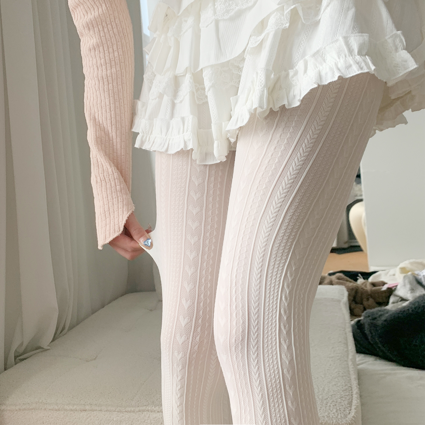 夜间教习室白色打底袜薄款爱心竖条纹lolita春秋外穿白丝袜连裤袜
