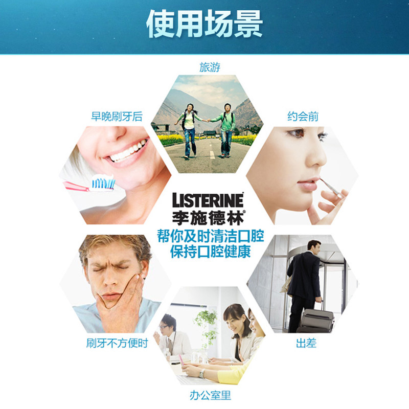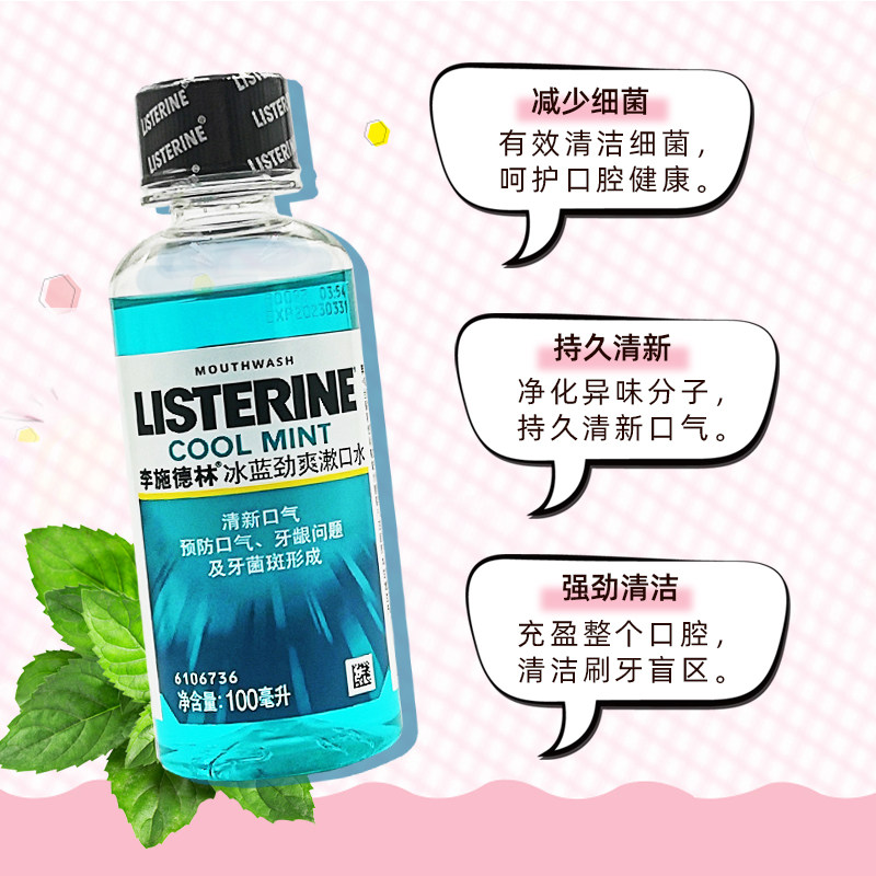 李施德林冰蓝漱口水3瓶便携装 上班接吻约会减口臭异味口气含漱液