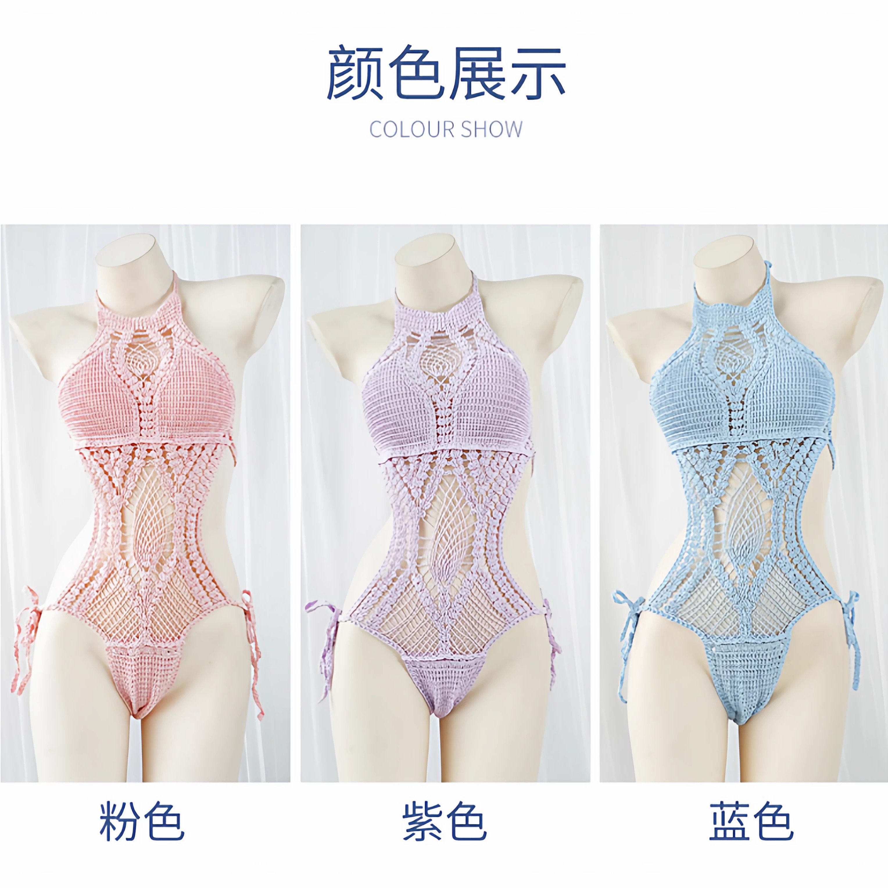 污喵社 日系性感高领露背毛衣二次元紧身针织连衣裙包臀裙女 伪娘