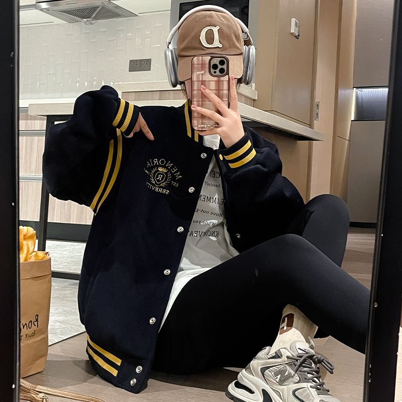 加棉棒球服外套女2024秋冬新款加厚宽松小个子休闲夹棉百搭夹克潮
