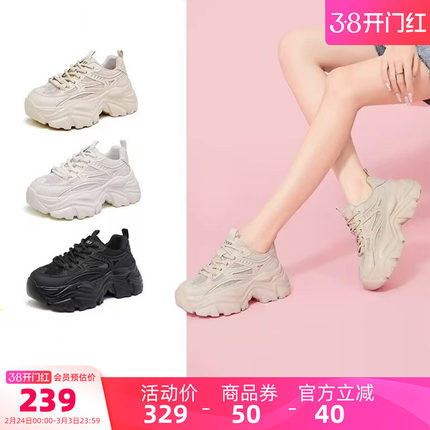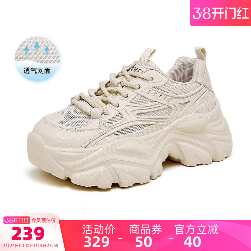 骆驼女鞋2026春季新款老爹鞋女款运动鞋复古百搭厚底显高休闲鞋潮