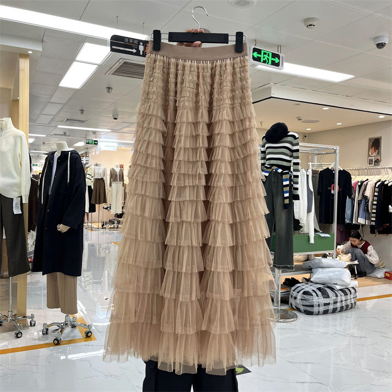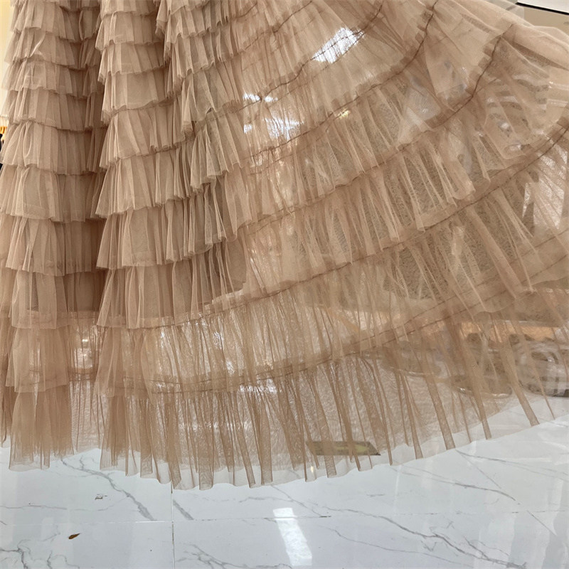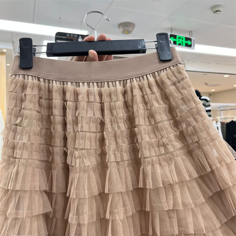 重工层层拼接网纱蛋糕裙半身裙2025春夏新款仙女纱裙a字百褶长裙