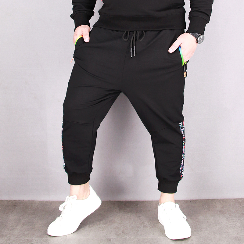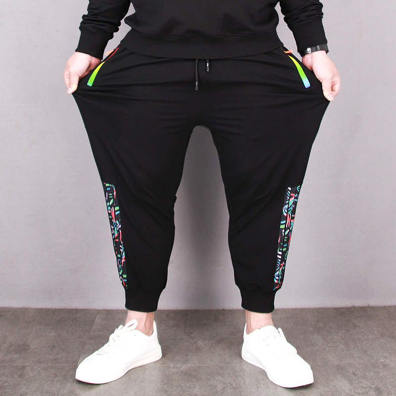 胖子9分男裤子宽松运动休闲束小脚男士加肥加大码九分卫裤春秋款