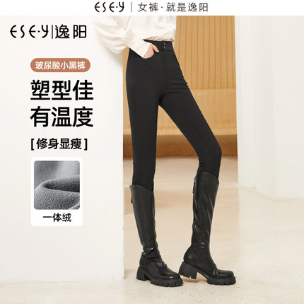 逸阳玻尿酸加绒黑色打底裤女秋冬外穿高腰弹力铅笔小脚魔术裤1085