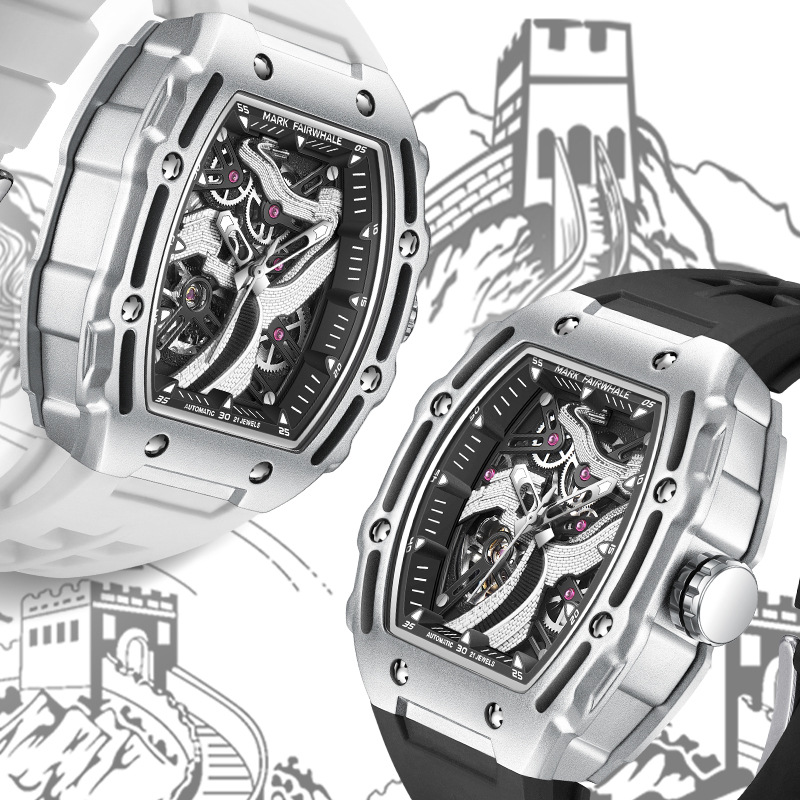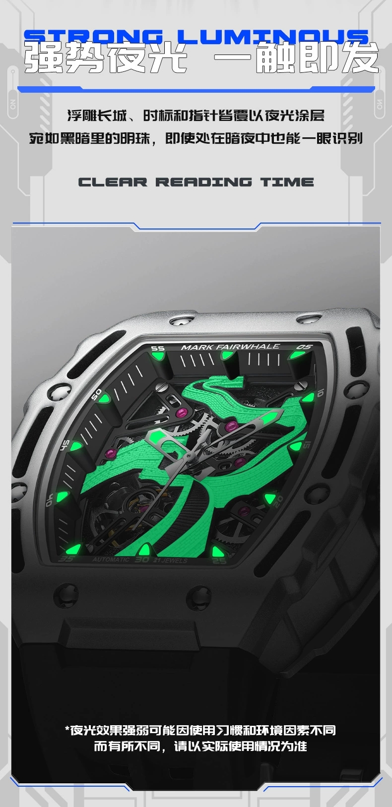 马克华菲新款长城手表男款酒桶全自动镂空机械表夜光防水男士手表
