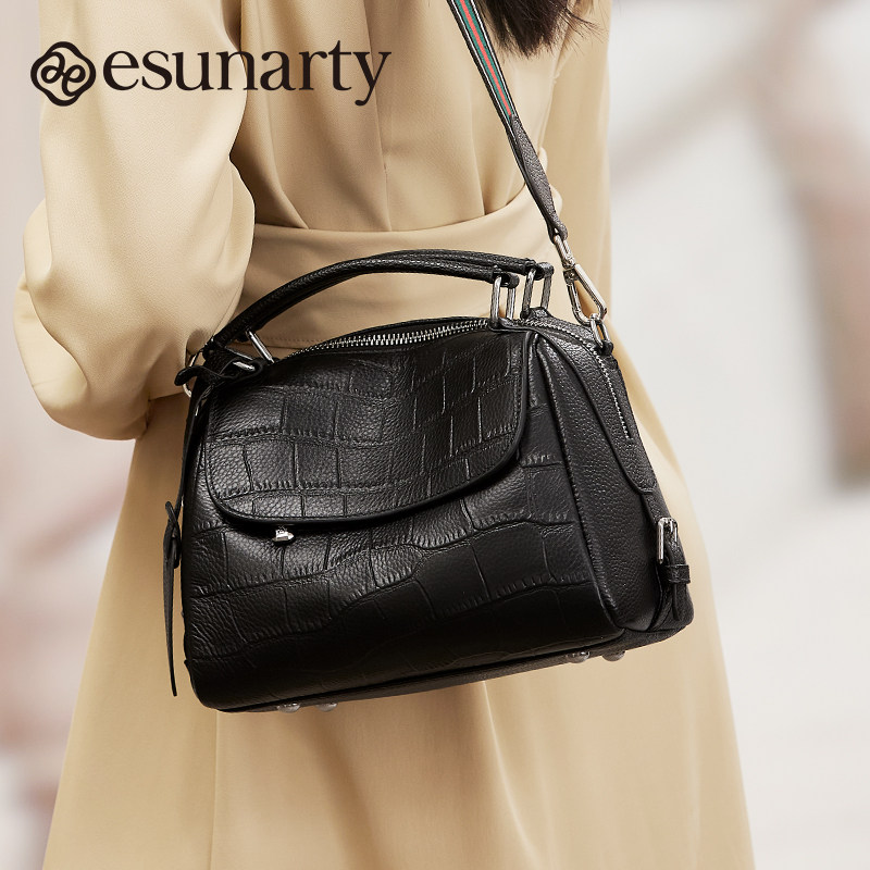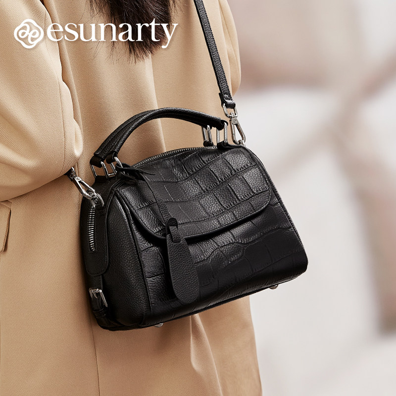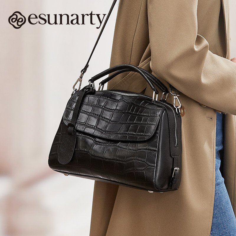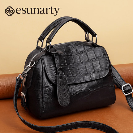 真皮波士顿女式包包2025年新款气质款鳄鱼纹女包秋冬季单肩斜挎包