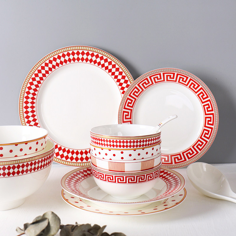 轻奢陶瓷碗碟餐具套装精致饭碗骨瓷盘子高颜值家用菜盘牛排西餐盘