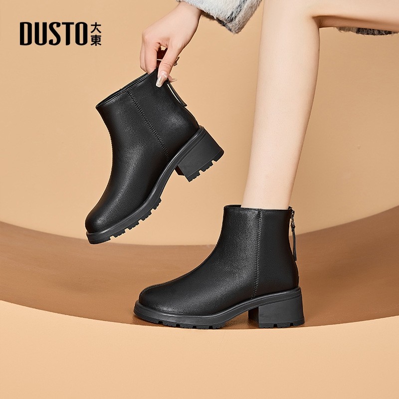 大东黑色短靴女2025新款秋冬加绒靴子小个子厚底瘦瘦靴切尔西女靴