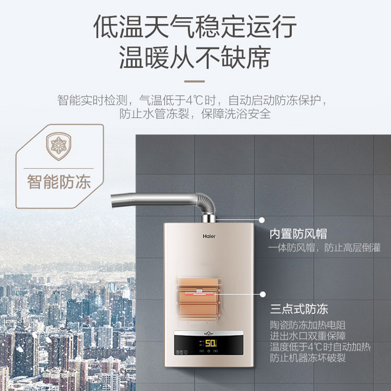 海尔燃气热水器12升13L家用洗澡天然气水气双调强排式变频节能ZDS