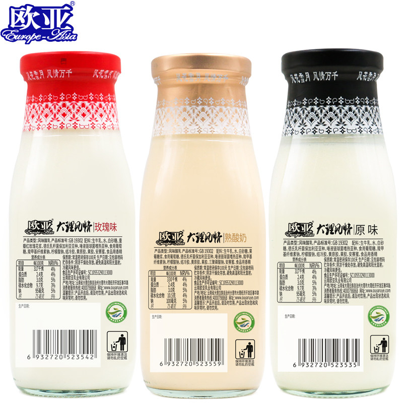 【日期新鲜】欧亚大理风情常温酸奶320g*10瓶原味熟酸奶鲜花