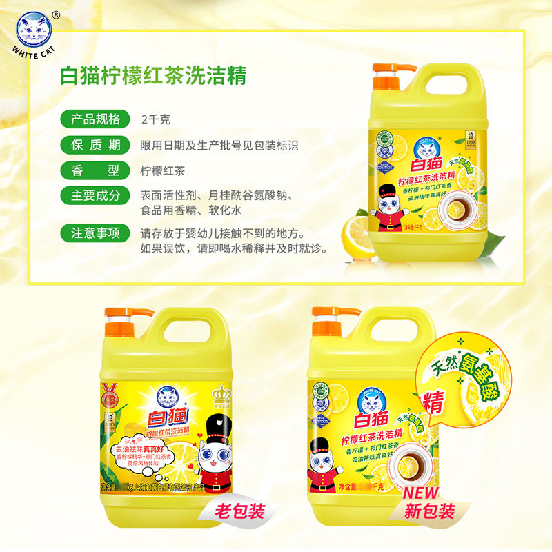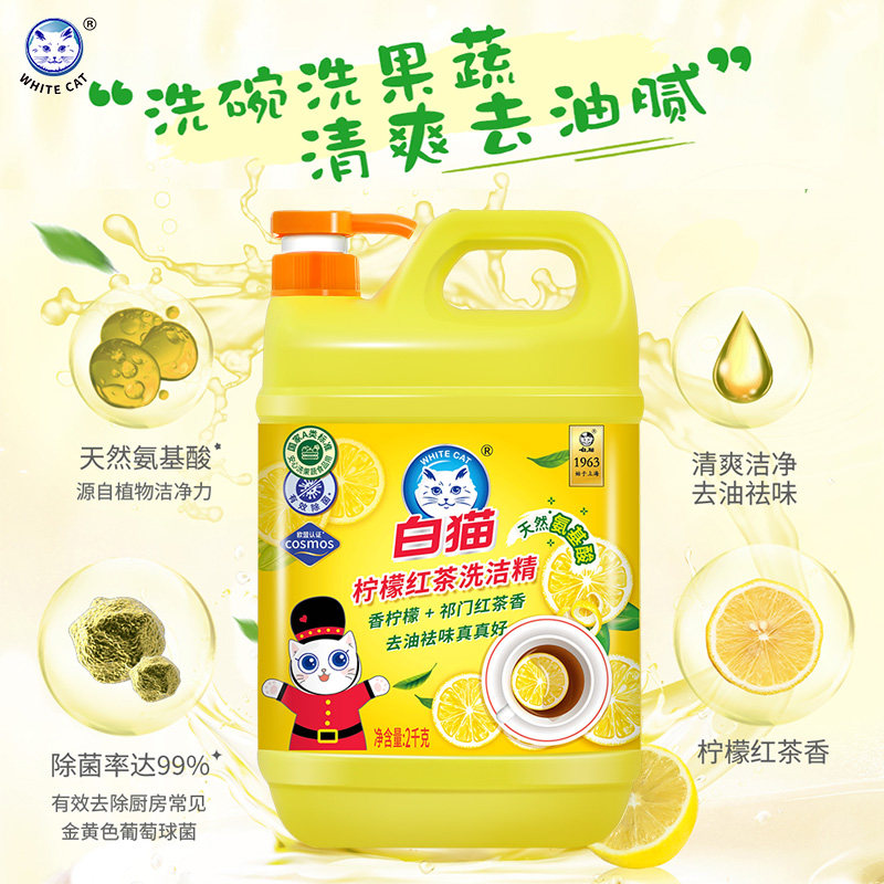 白猫洗洁精家用洗碗液大桶家庭装餐具洗涤剂商用餐饮柠檬红茶2kg