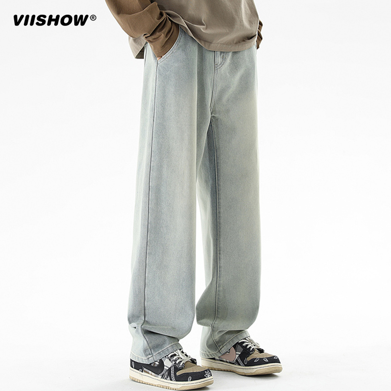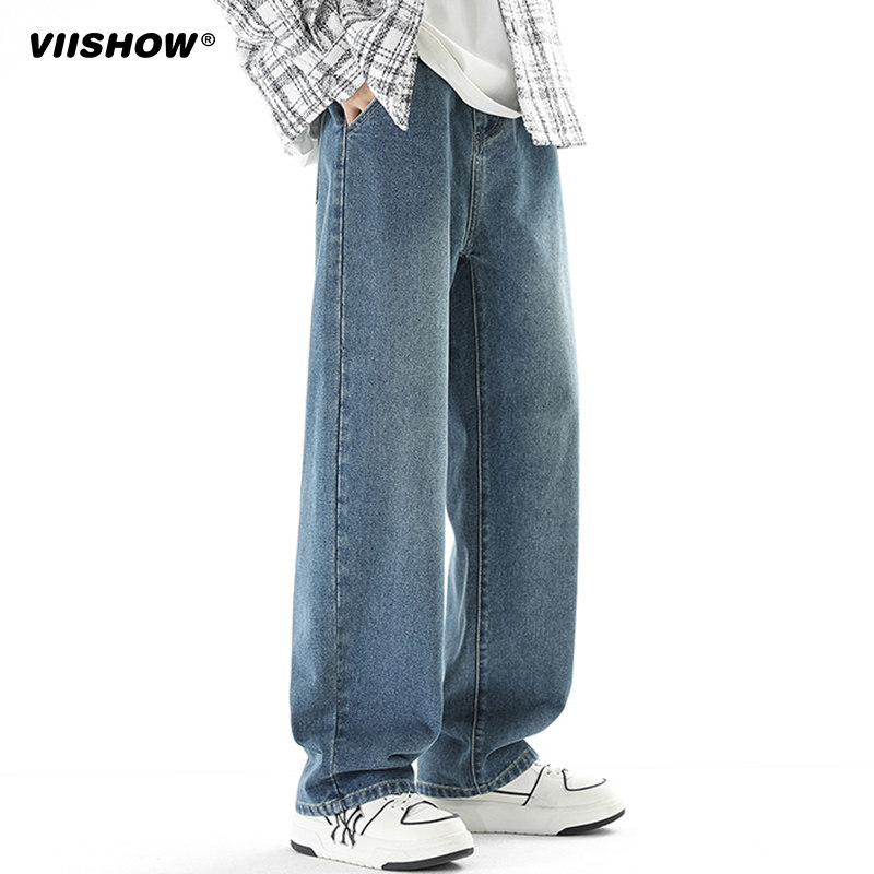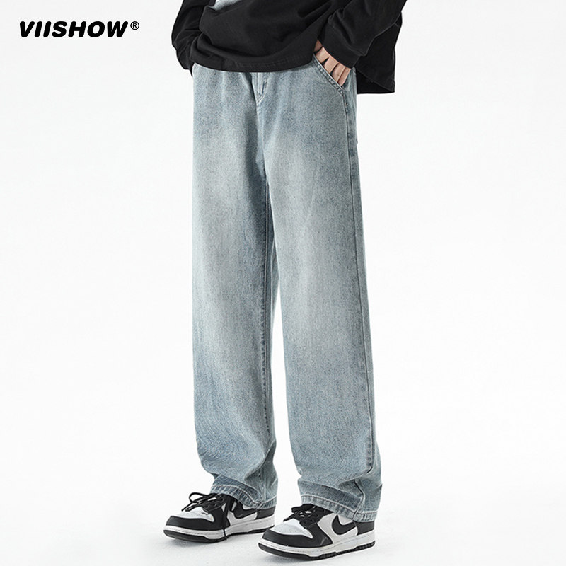 VIISHOW水洗牛仔裤男春秋新款宽松百搭直筒潮牌cleanfit阔腿裤子