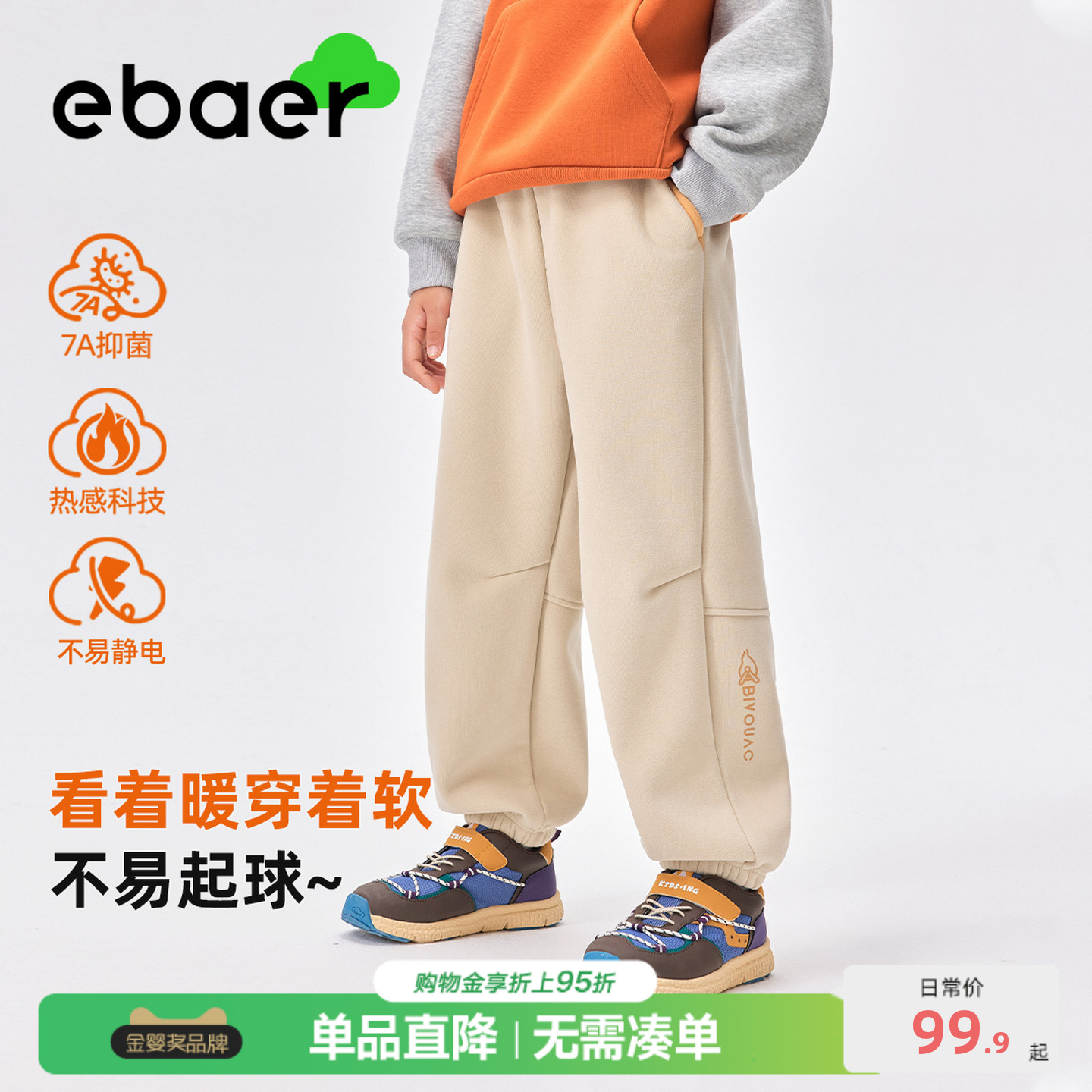 ebaer儿童加绒运动休闲裤2025冬装新款男童加厚保暖长裤女童裤子