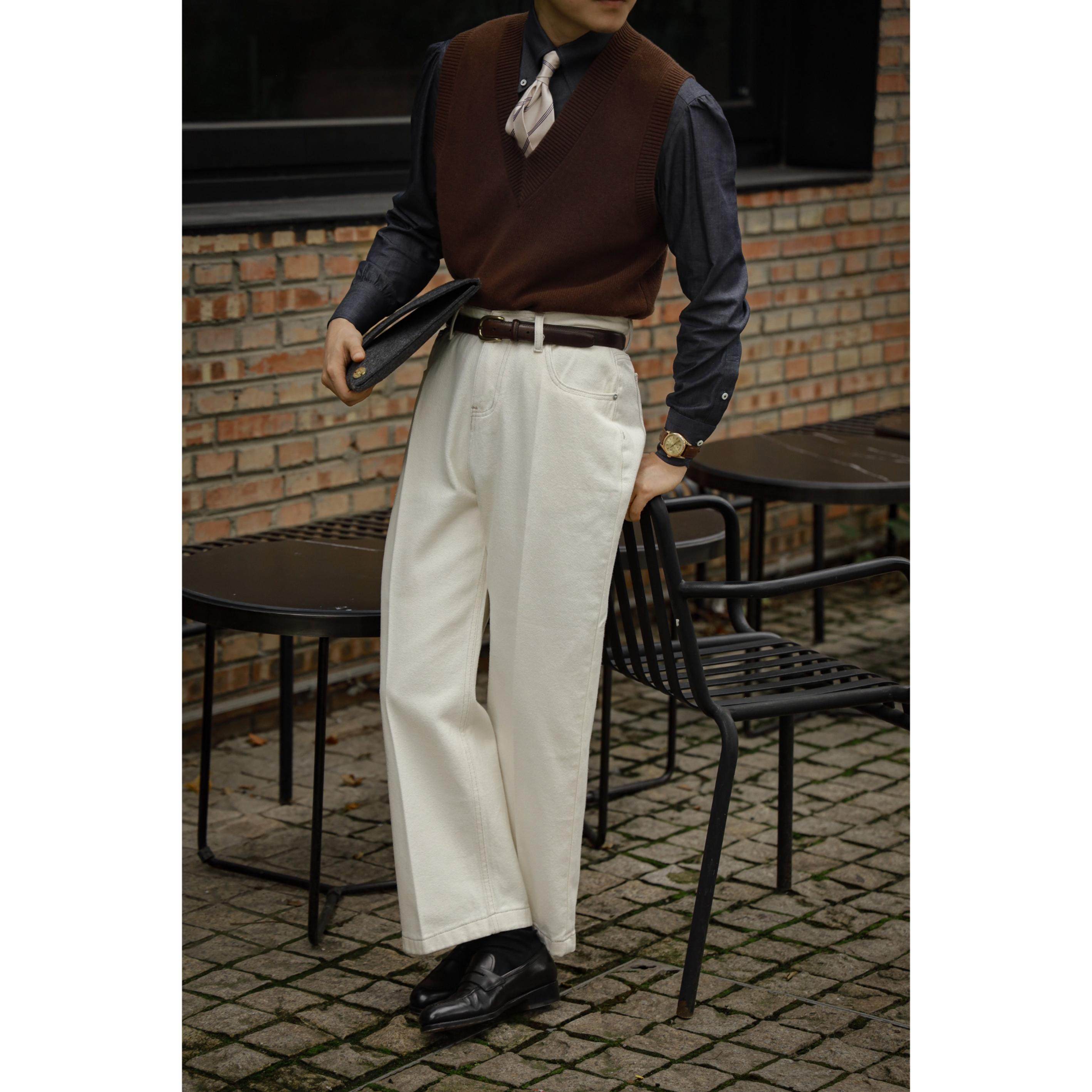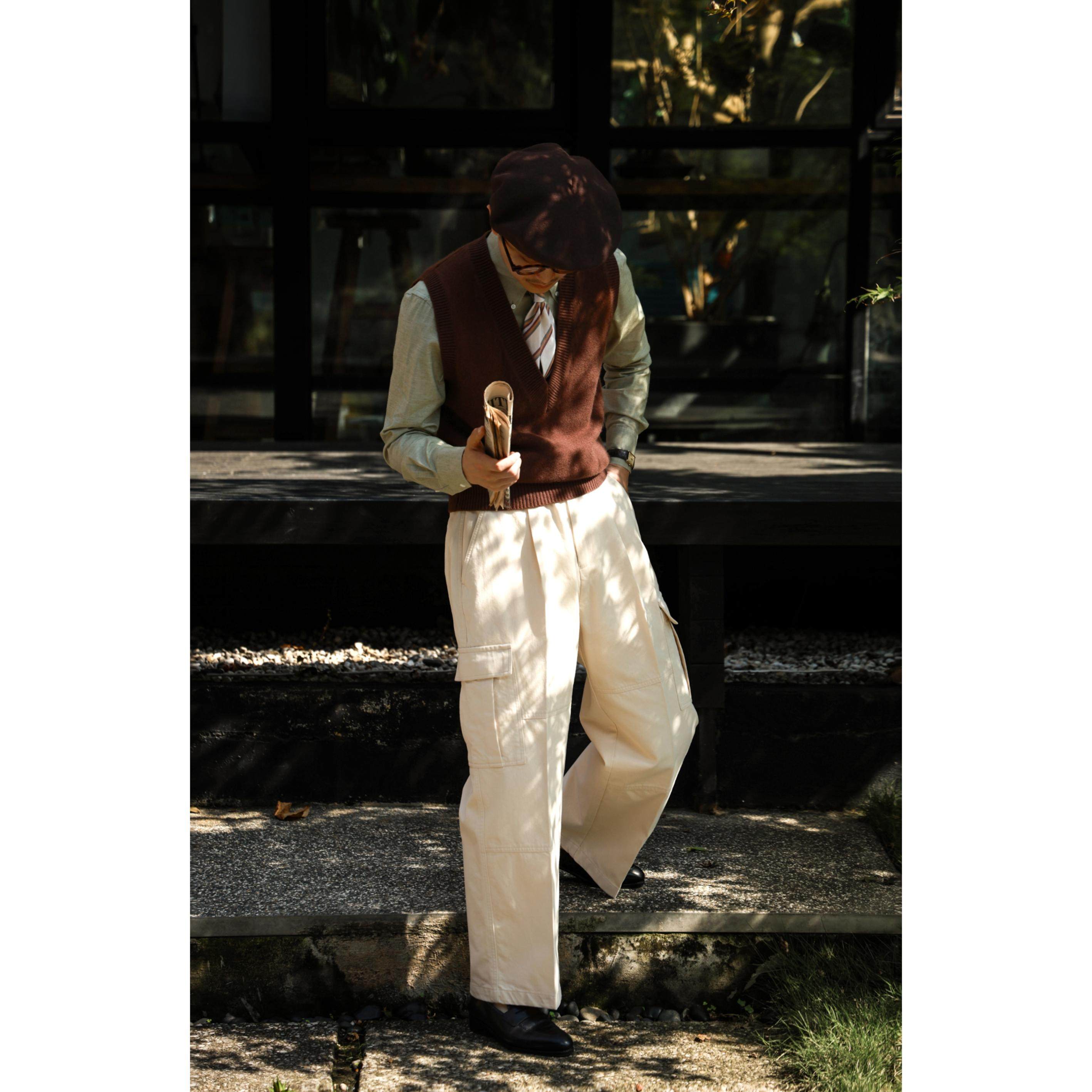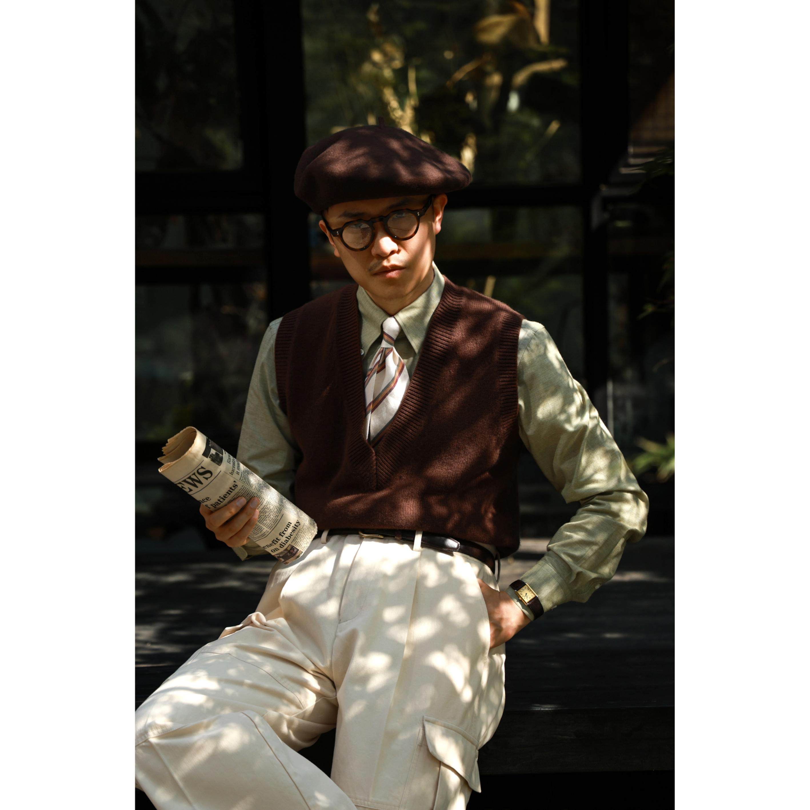 UGENTLE男装 100%美丽诺羊毛针织衫「浓情可可」冬 复古V领男背心