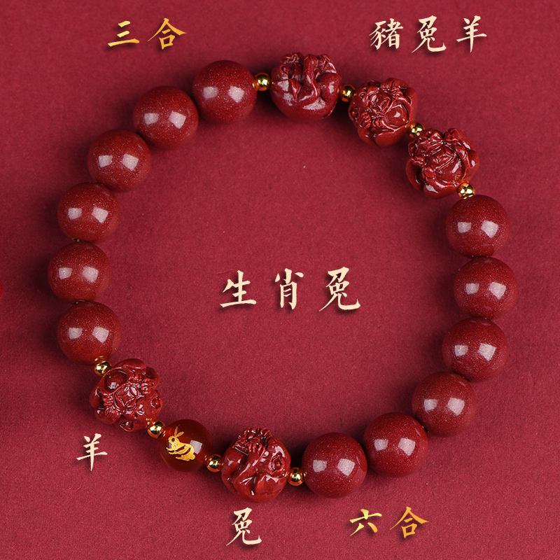 官方旗舰店蛇年朱砂手串三合六合生肖手链男本命年女属蛇虎猪猴龙